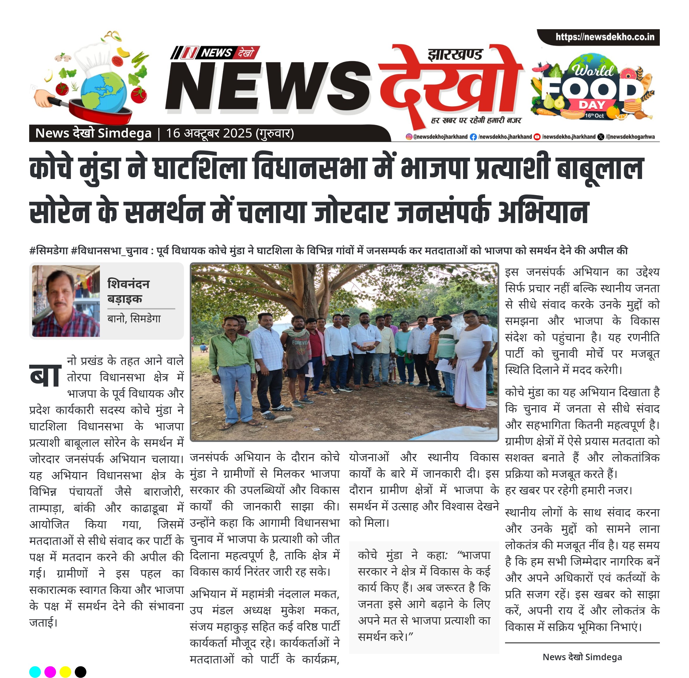 कोचे मुंडा ने घाटशिला विधानसभा में भाजपा प्रत्याशी बाबूलाल सोरेन के समर्थन में चलाया जोरदार जनसंपर्क अभियान