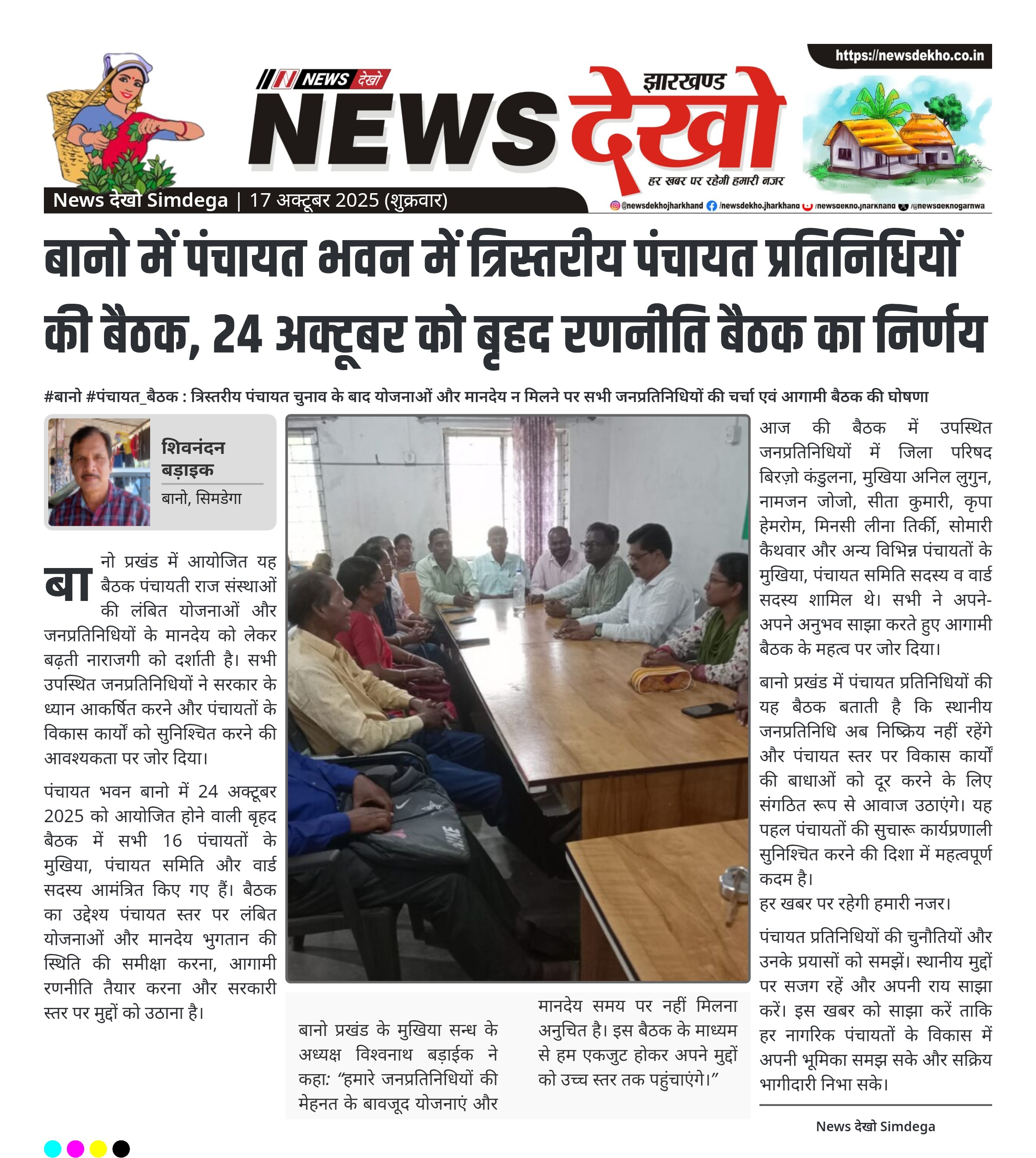 बानो में पंचायत भवन में त्रिस्तरीय पंचायत प्रतिनिधियों की बैठक, 24 अक्टूबर को बृहद रणनीति बैठक का निर्णय