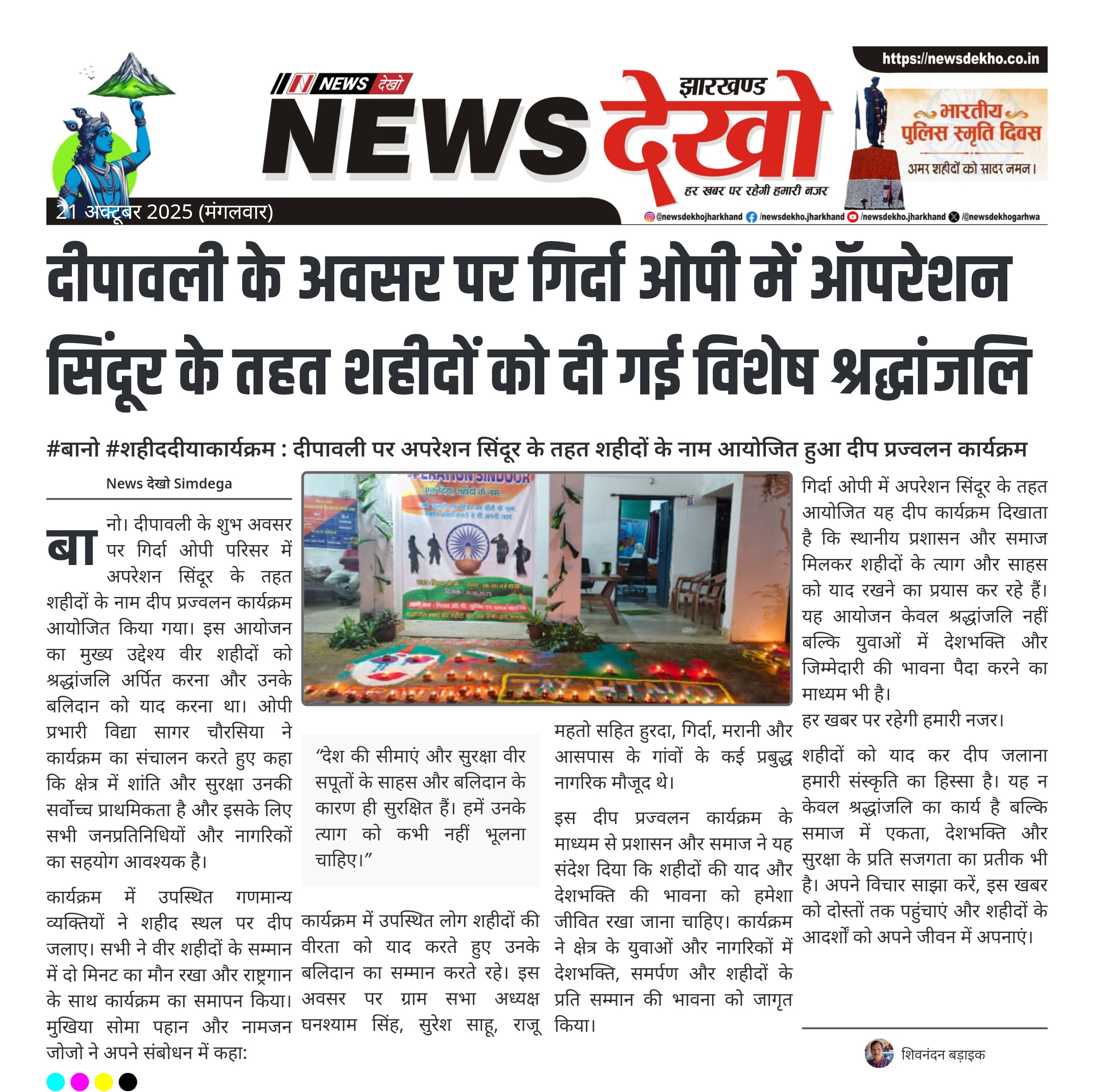 दीपावली के अवसर पर गिर्दा ओपी में ऑपरेशन सिंदूर के तहत शहीदों को दी गई विशेष श्रद्धांजलि