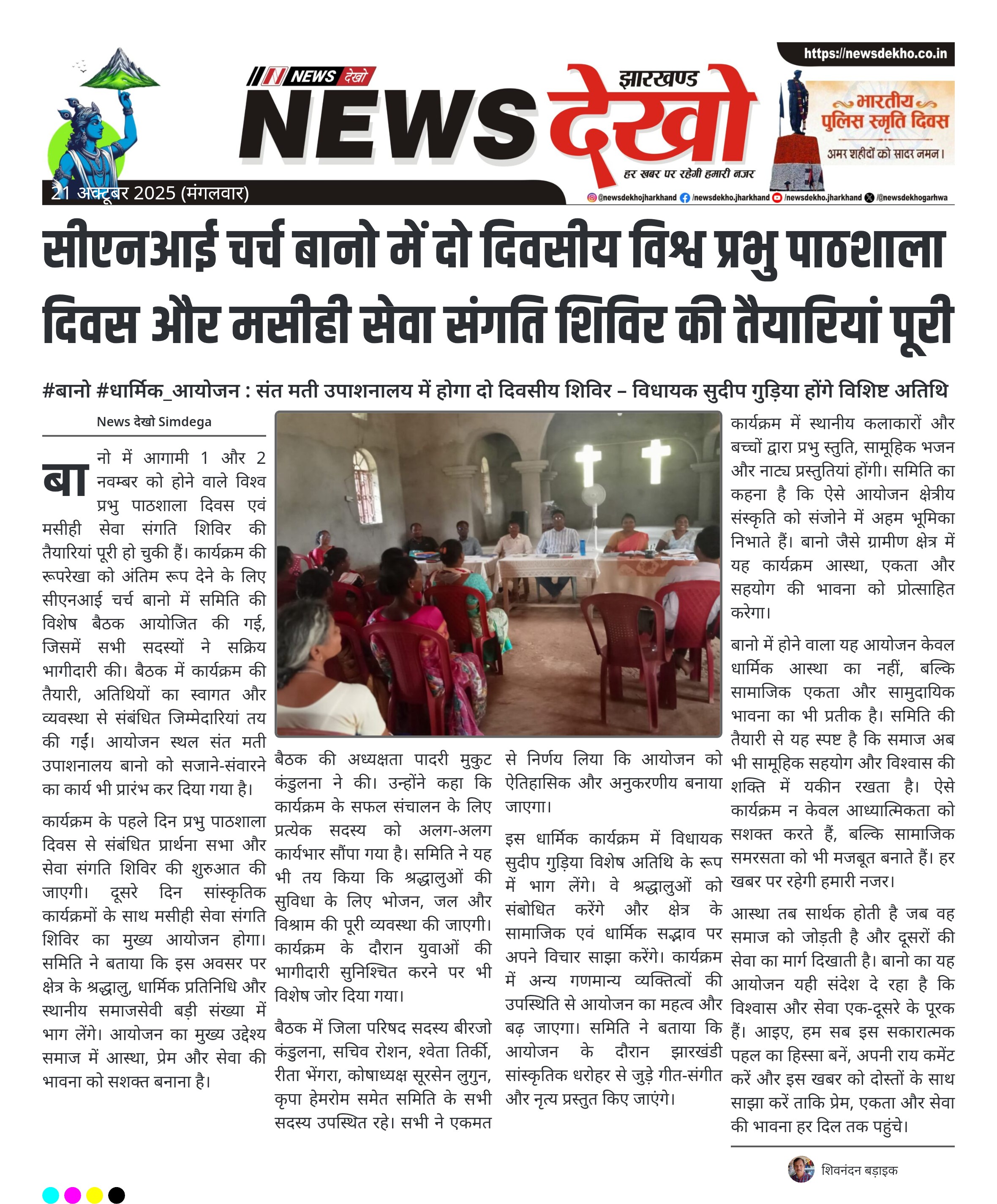 #बानो #धार्मिक_आयोजन : संत मती उपाशनालय में होगा दो दिवसीय शिविर – विधायक सुदीप गुड़िया होंगे विशिष्ट अतिथि सीएनआई चर्च बानो में समिति की बैठक आयोजित। 1 और 2 नवम्बर को होगा दो दिवसीय धार्मिक कार्यक्रम। विश्व प्रभु पाठशाला दिवस और मसीही सेवा संगति शिविर का आयोजन तय। विधायक सुदीप गुड़िया रहेंगे विशिष्ट अतिथि के रूप में शामिल। तैयारी बैठक में पादरी मुकुट कंडुलना सहित कई सदस्य उपस्थित। बानो में आगामी 1 और 2 नवम्बर को होने वाले विश्व प्रभु…