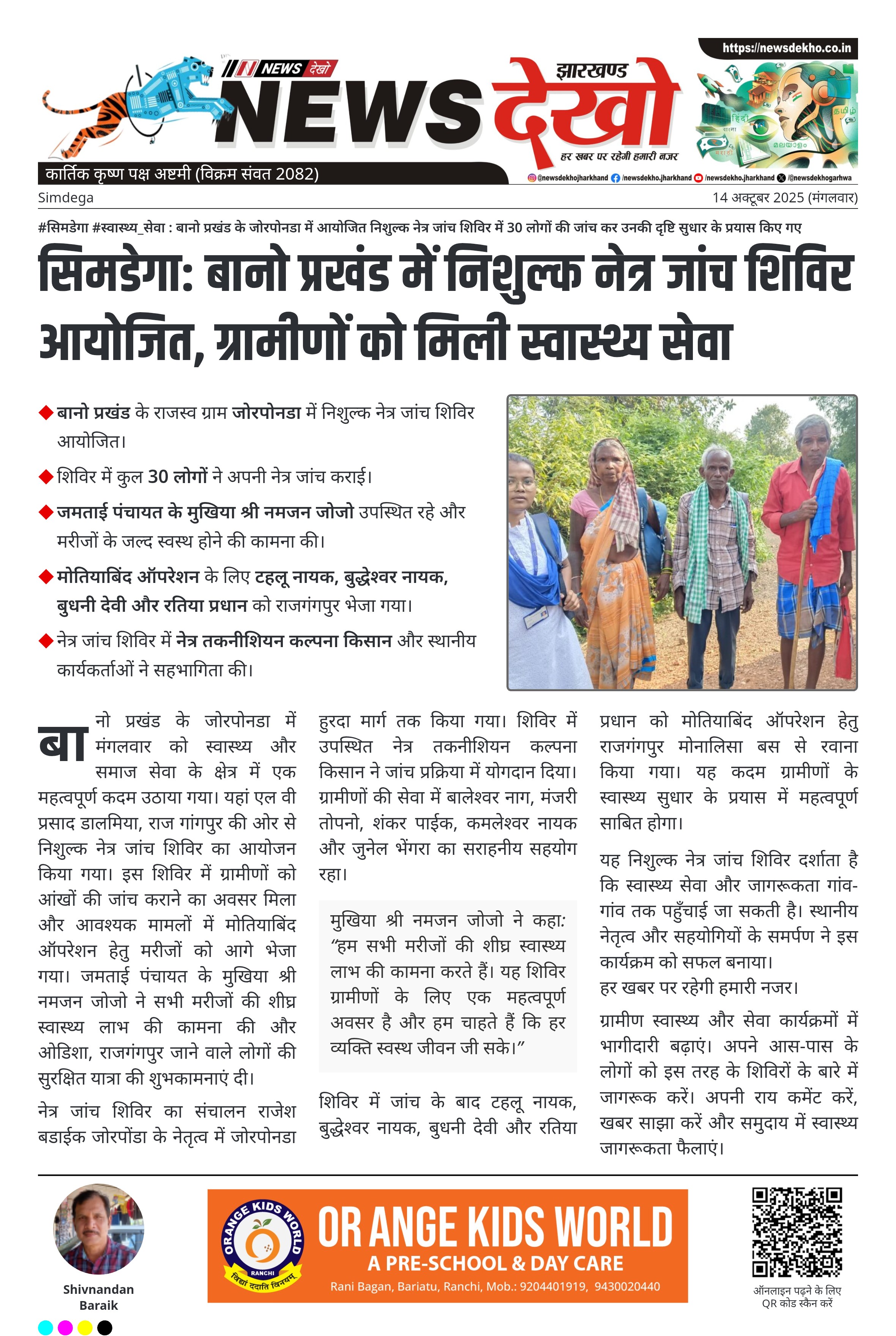 सिमडेगा: बानो प्रखंड में निशुल्क नेत्र जांच शिविर आयोजित, ग्रामीणों को मिली स्वास्थ्य सेवा