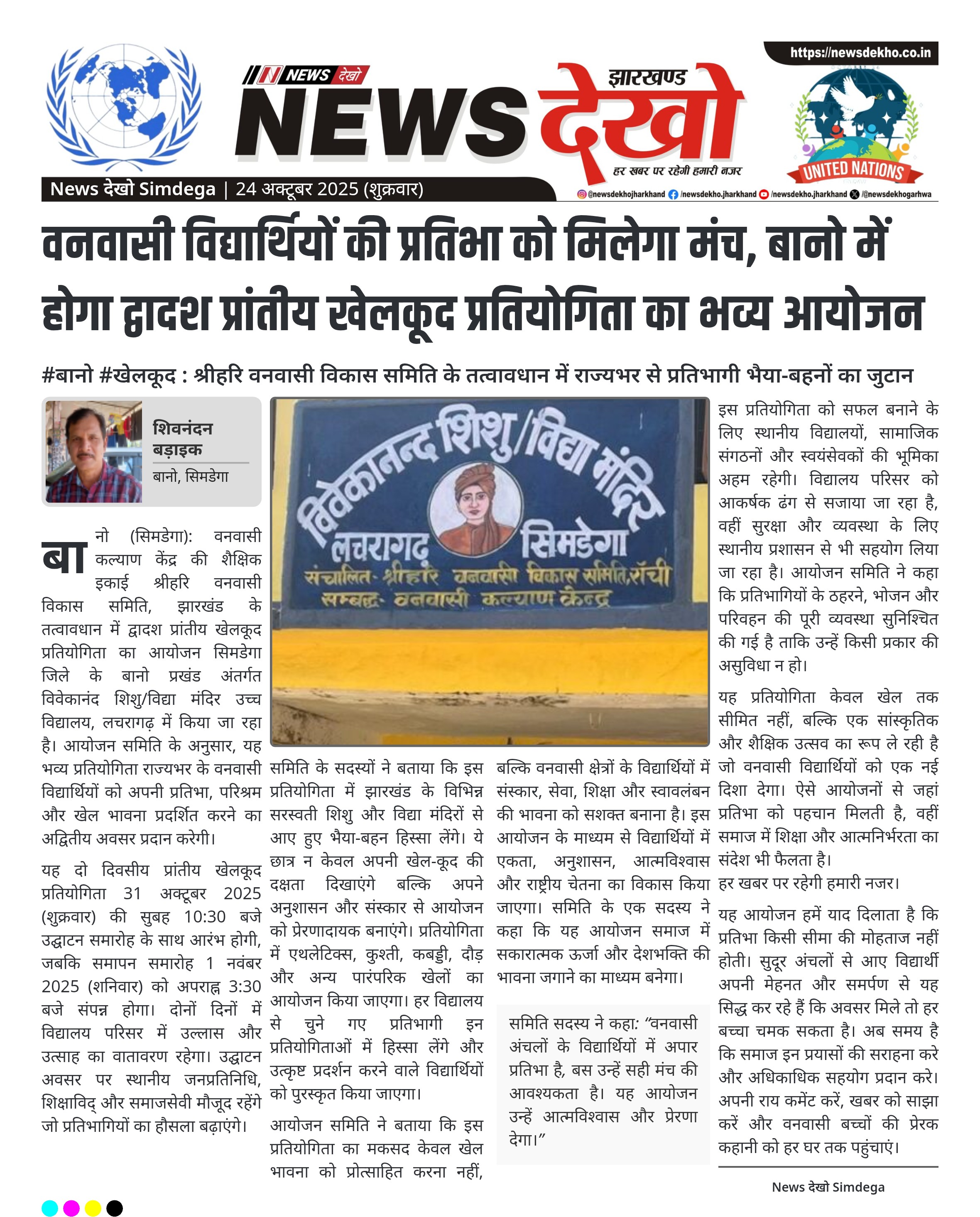 #बानो #खेलकूद : श्रीहरि वनवासी विकास समिति के तत्वावधान में राज्यभर से प्रतिभागी भैया-बहनों का जुटान 31 अक्टूबर से 1 नवंबर तक दो दिवसीय कार्यक्रम का आयोजन होगा। लचरागढ़ स्थित विवेकानंद विद्यालय परिसर में खेलकूद प्रतियोगिता संपन्न होगी। राज्य के विभिन्न सरस्वती शिशु/विद्या मंदिरों से आएंगे प्रतिभागी। प्रतियोगिता में एथलेटिक्स, कुश्ती और अन्य खेलों का आयोजन होगा। उद्देश्य — विद्यार्थियों में अनुशासन, सेवा और राष्ट्रीय चेतना का विकास। बानो (सिमडेगा): वनवासी कल्याण केंद्र की शैक्षिक इकाई श्रीहरि वनवासी विकास समिति,…