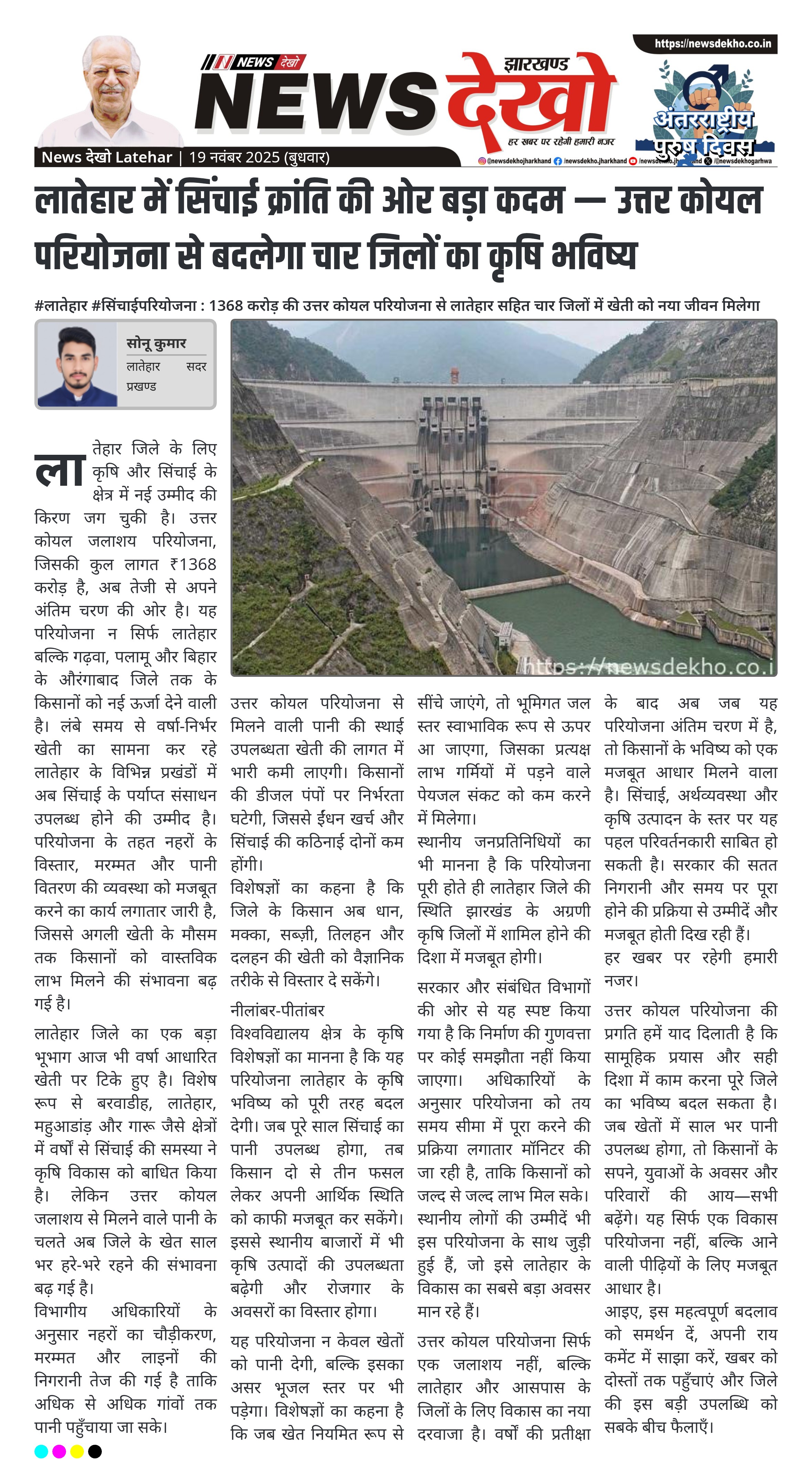 लातेहार में सिंचाई क्रांति की ओर बड़ा कदम — उत्तर कोयल परियोजना से बदलेगा चार जिलों का कृषि भविष्य