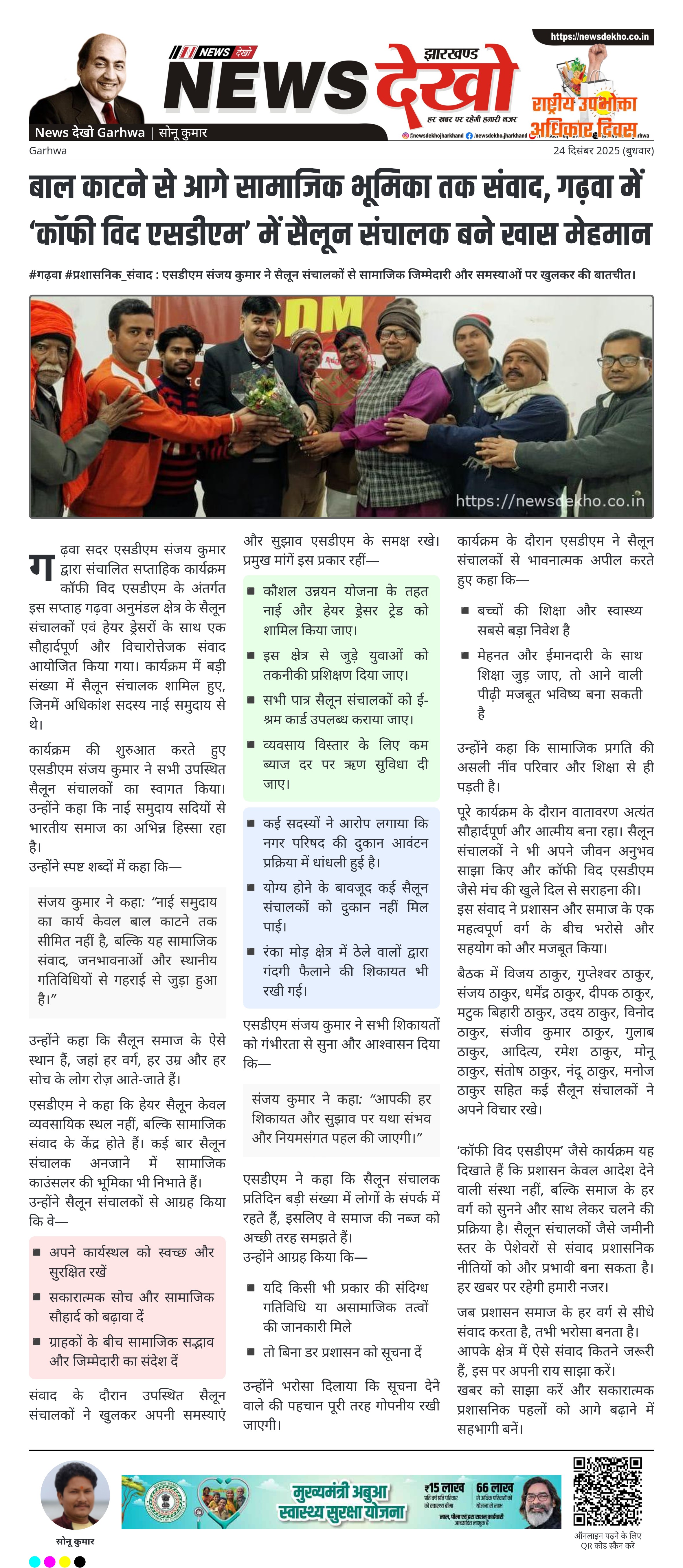 बाल काटने से आगे सामाजिक भूमिका तक संवाद, गढ़वा में ‘कॉफी विद एसडीएम’ में सैलून संचालक बने खास मेहमान