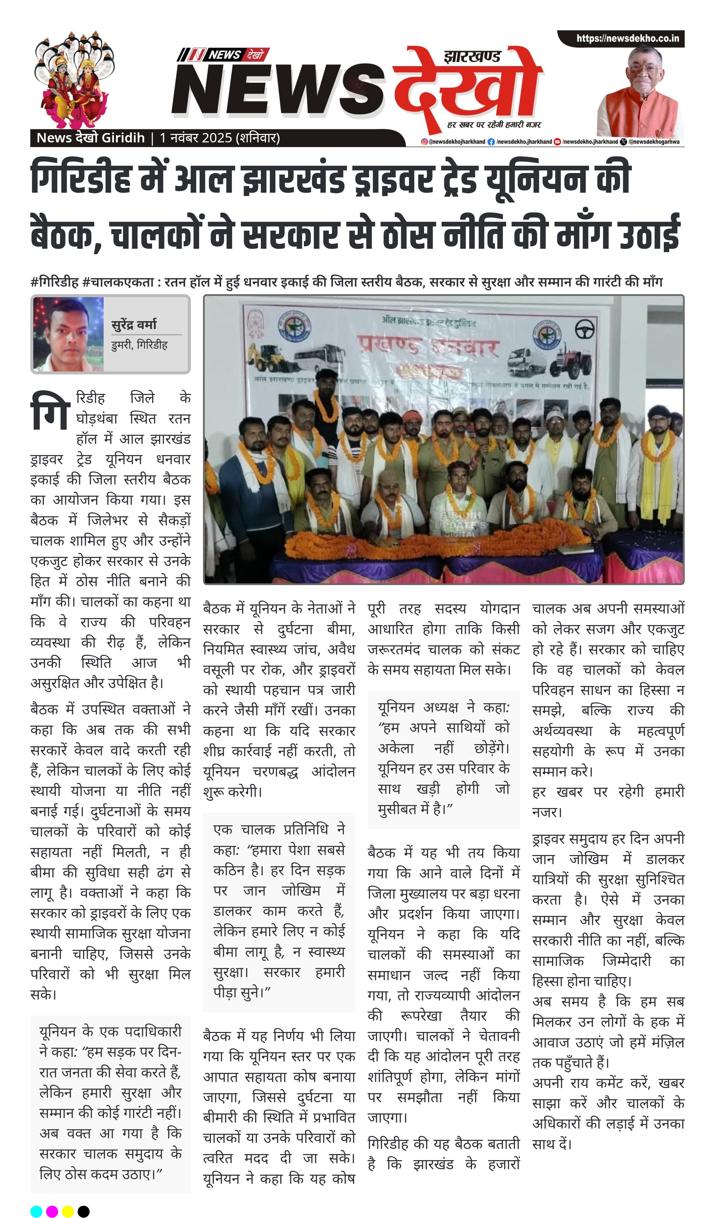 गिरिडीह में आल झारखंड ड्राइवर ट्रेड यूनियन की बैठक, चालकों ने सरकार से ठोस नीति की माँग उठाई