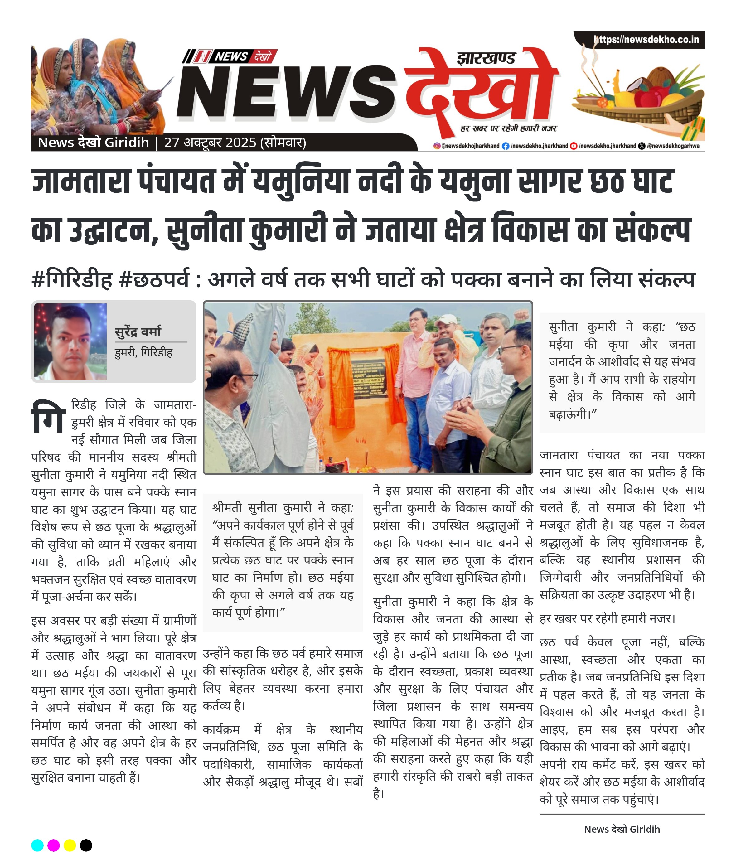 जामतारा पंचायत में यमुनिया नदी के यमुना सागर छठ घाट का उद्घाटन, सुनीता कुमारी ने जताया क्षेत्र विकास का संकल्प