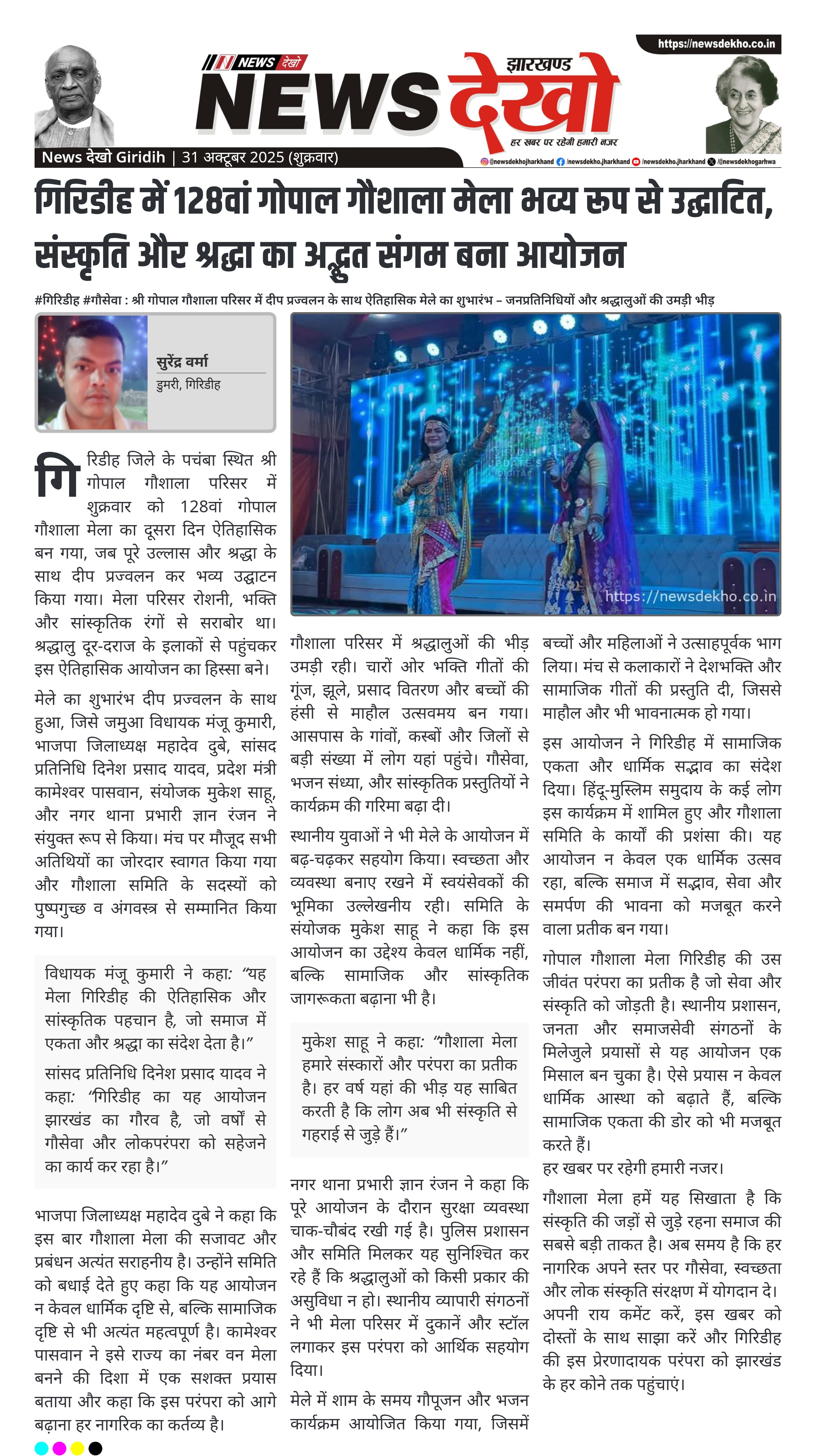 गिरिडीह में श्री गोपाल गौशाला मेला का भव्य शुभारंभ श्रद्धा और संस्कृति से सराबोर हुआ माहौल