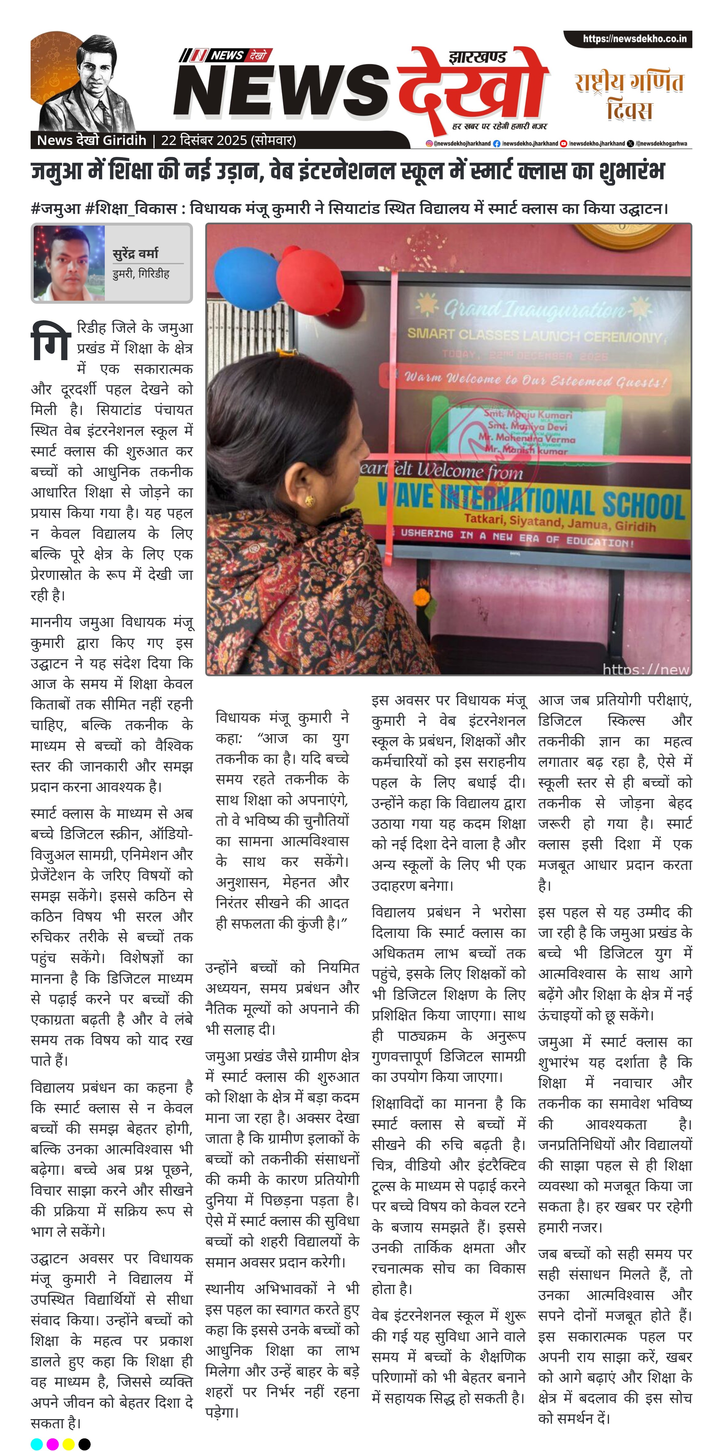 जमुआ में शिक्षा की नई उड़ान, वेब इंटरनेशनल स्कूल में स्मार्ट क्लास का शुभारंभ