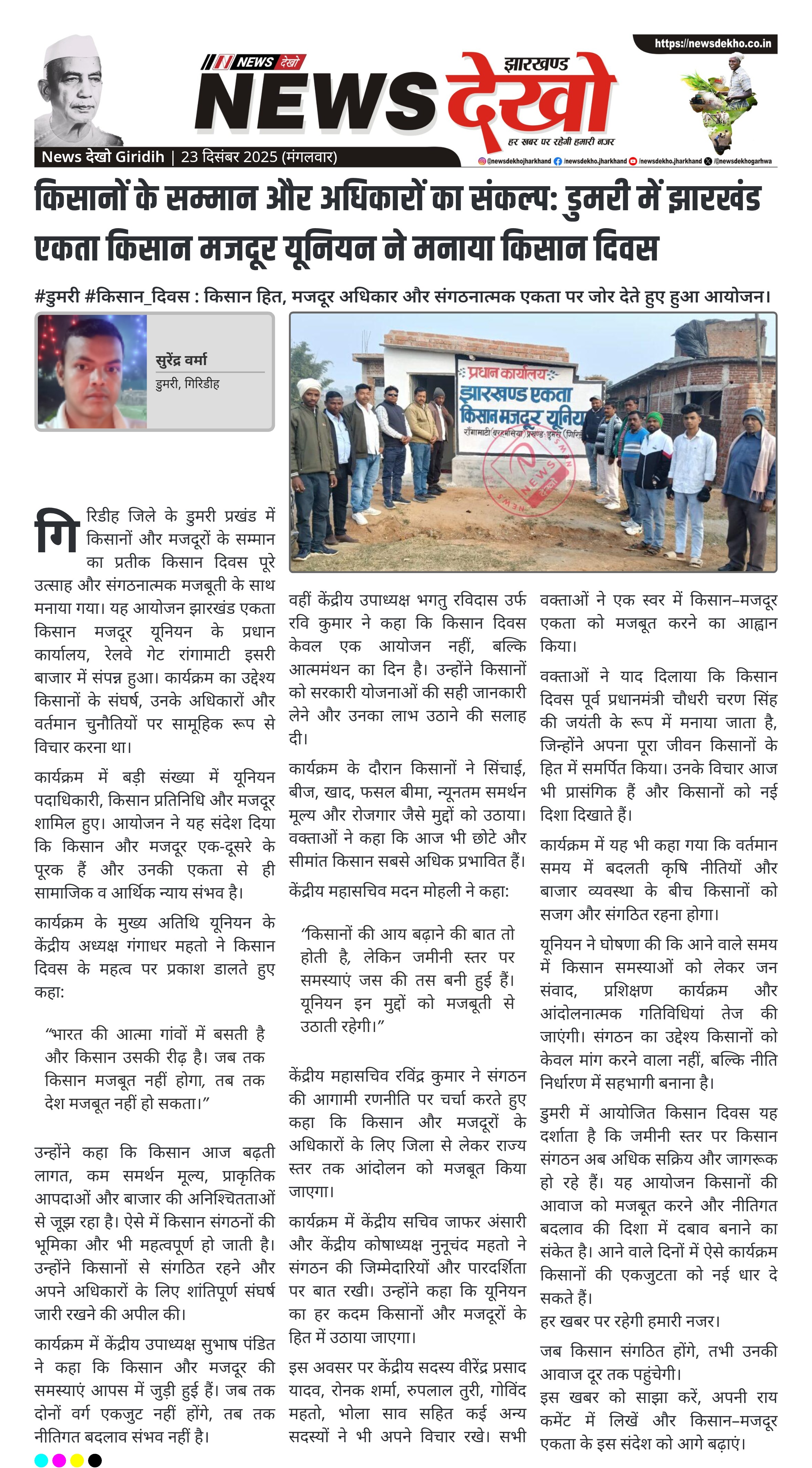 किसानों के सम्मान और अधिकारों का संकल्प: डुमरी में झारखंड एकता किसान मजदूर यूनियन ने मनाया किसान दिवस