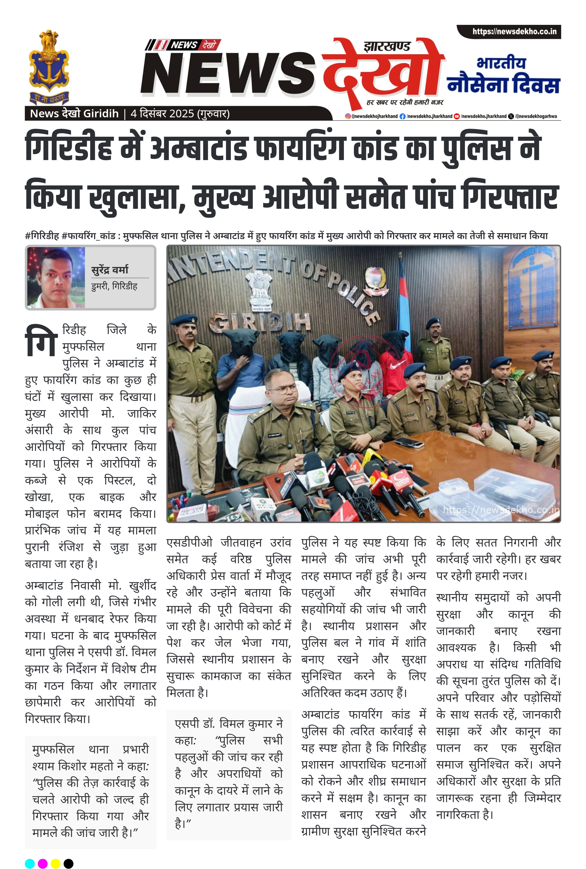 गिरिडीह में अम्बाटांड फायरिंग कांड का पुलिस ने किया खुलासा, मुख्य आरोपी समेत पांच गिरफ्तार