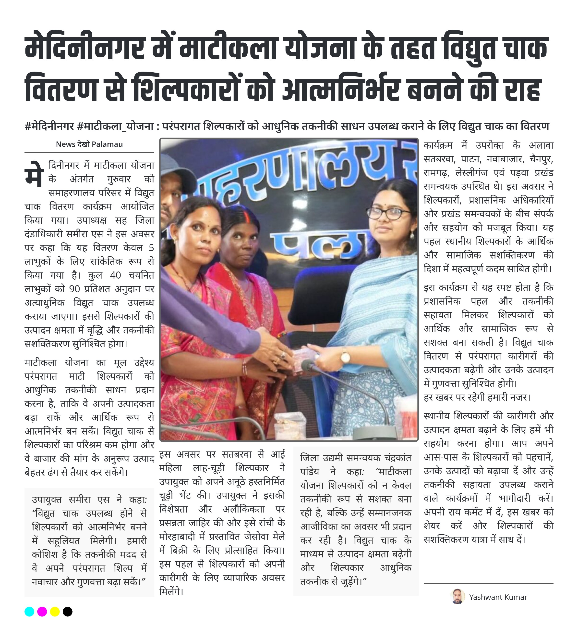 मेदिनीनगर में माटीकला योजना के तहत विद्युत चाक वितरण से शिल्पकारों को आत्मनिर्भर बनने की राह