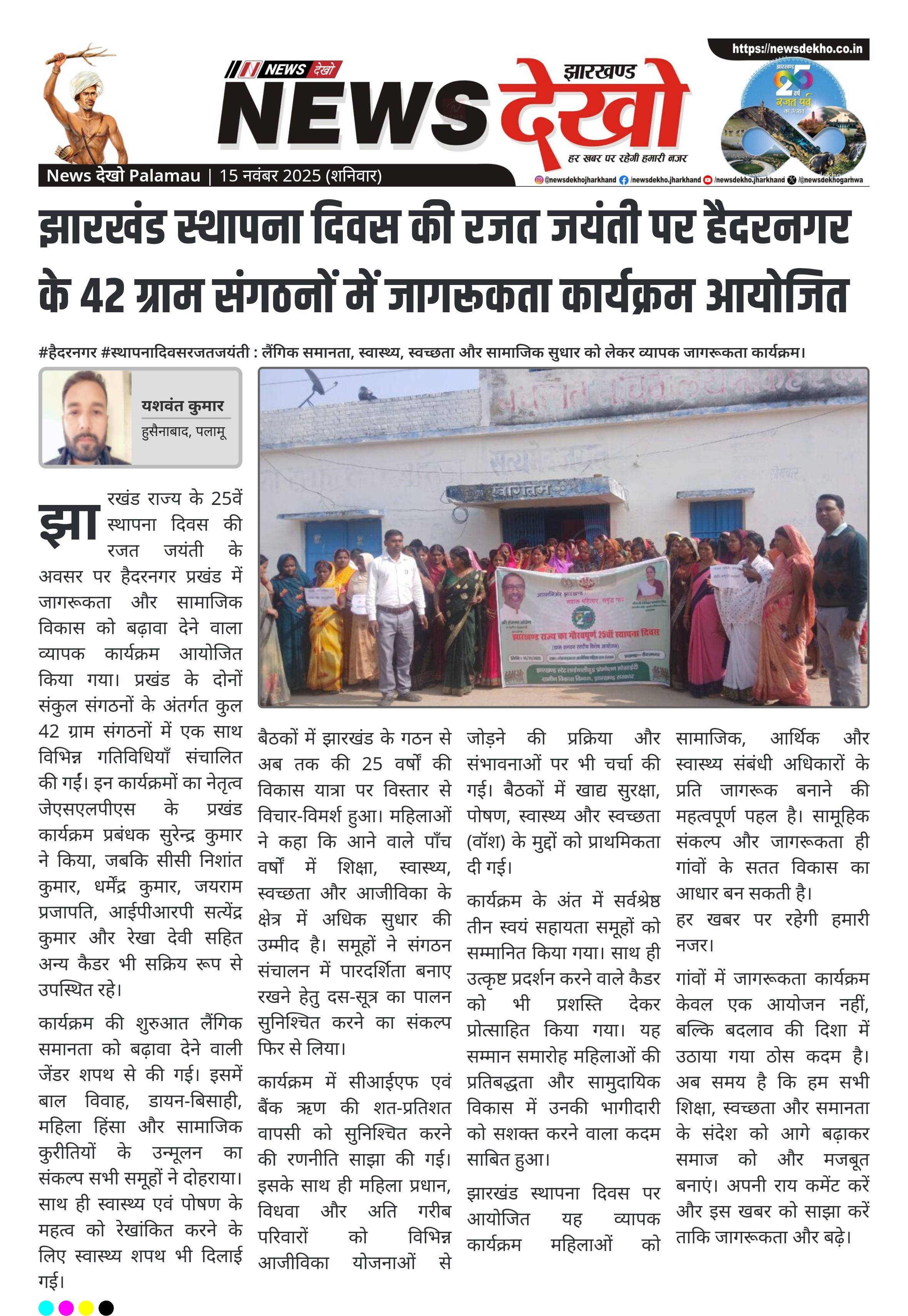 झारखंड स्थापना दिवस की रजत जयंती पर हैदरनगर के 42 ग्राम संगठनों में जागरूकता कार्यक्रम आयोजित