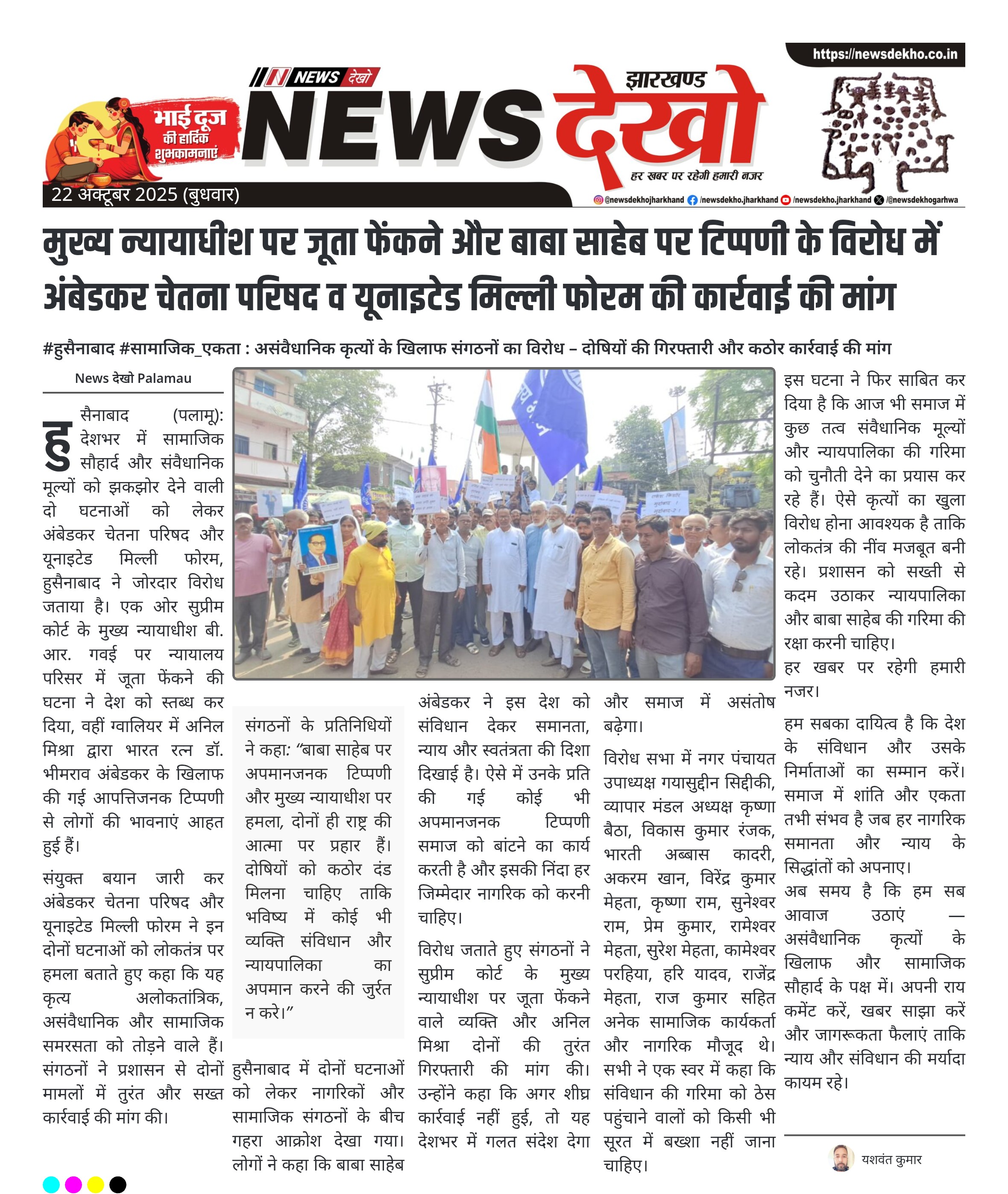 मुख्य न्यायाधीश पर जूता फेंकने और बाबा साहेब पर टिप्पणी के विरोध में अंबेडकर चेतना परिषद व यूनाइटेड मिल्ली फोरम की कार्रवाई की मांग