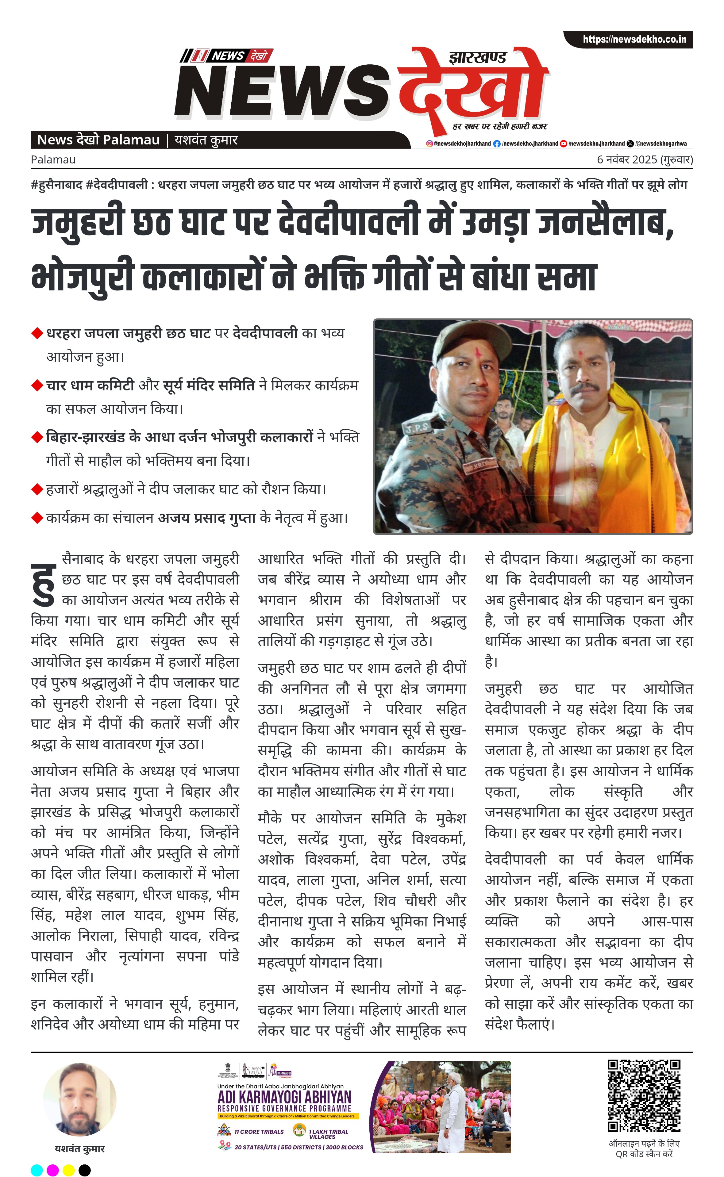 #हुसैनाबाद #देवदीपावली : धरहरा जपला जमुहरी छठ घाट पर भव्य आयोजन में हजारों श्रद्धालु हुए शामिल, कलाकारों के भक्ति गीतों पर झूमे लोग धरहरा जपला जमुहरी छठ घाट पर देवदीपावली का भव्य आयोजन हुआ। चार धाम कमिटी और सूर्य मंदिर समिति ने मिलकर कार्यक्रम का सफल आयोजन किया। बिहार-झारखंड के आधा दर्जन भोजपुरी कलाकारों ने भक्ति गीतों से माहौल को भक्तिमय बना दिया। हजारों श्रद्धालुओं ने दीप जलाकर घाट को रौशन किया। कार्यक्रम का संचालन अजय प्रसाद गुप्ता के नेतृत्व…