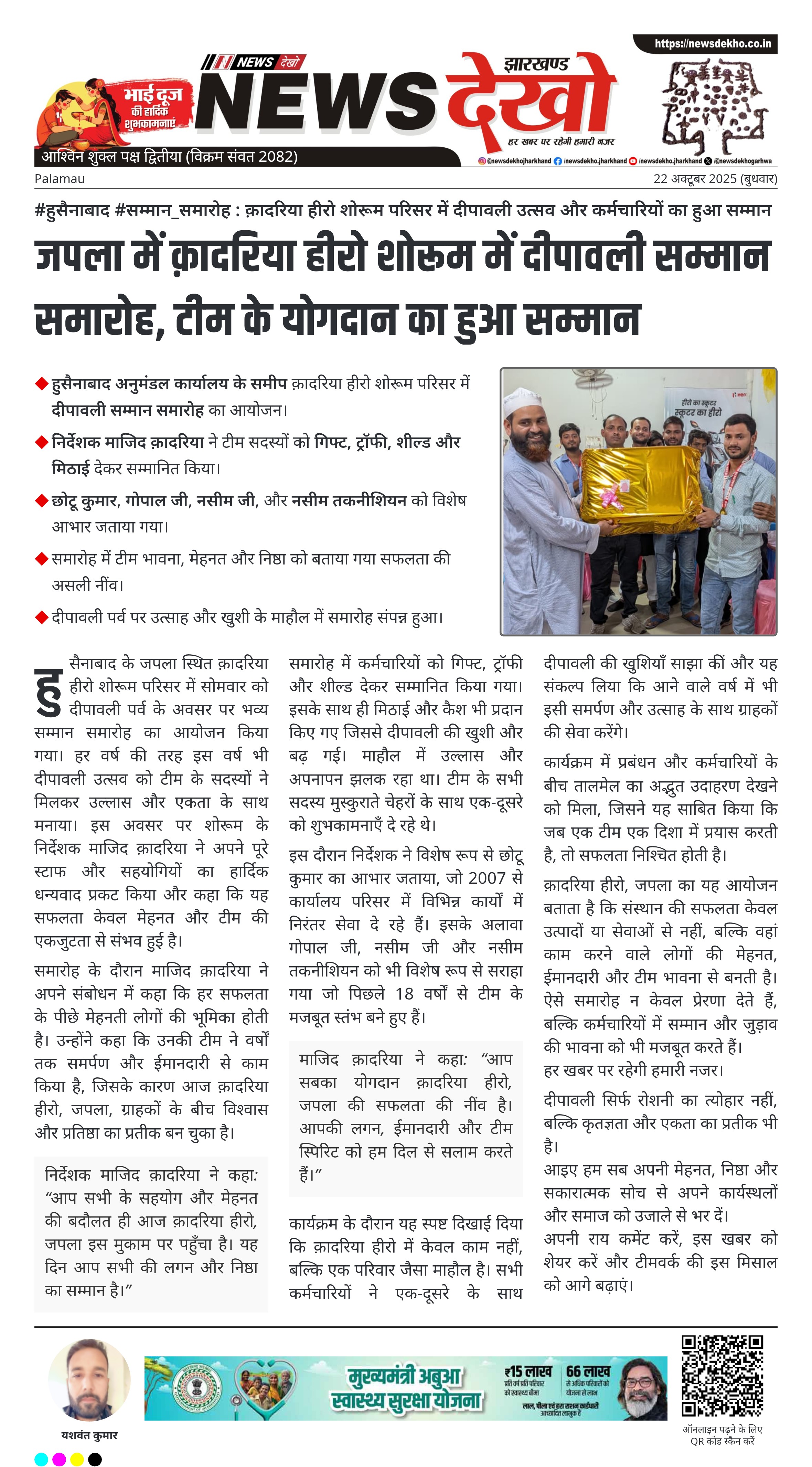 जपला में क़ादरिया हीरो शोरूम में दीपावली सम्मान समारोह, टीम के योगदान का हुआ सम्मान