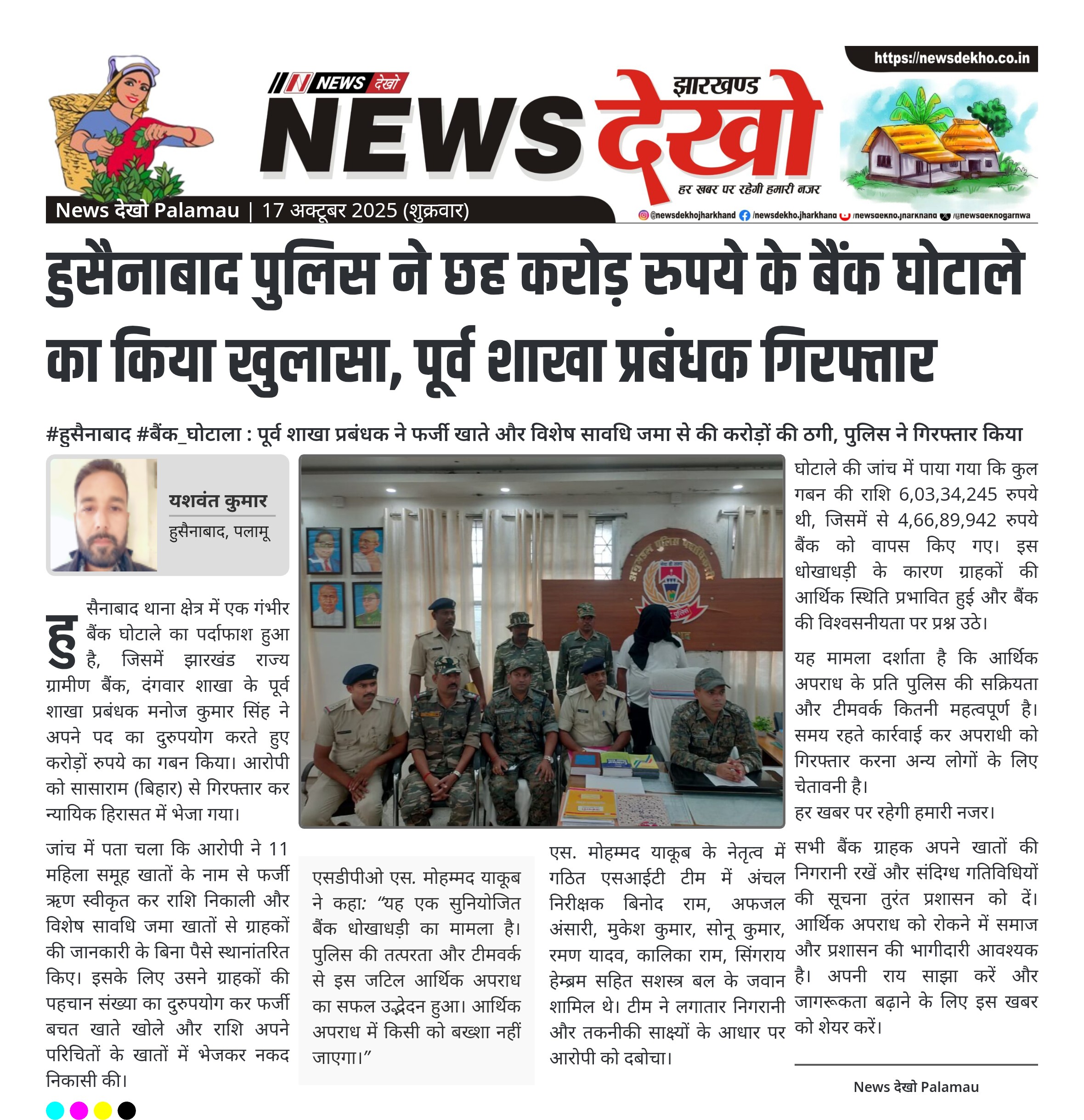 हुसैनाबाद पुलिस ने छह करोड़ रुपये के बैंक घोटाले का किया खुलासा, पूर्व शाखा प्रबंधक गिरफ्तार