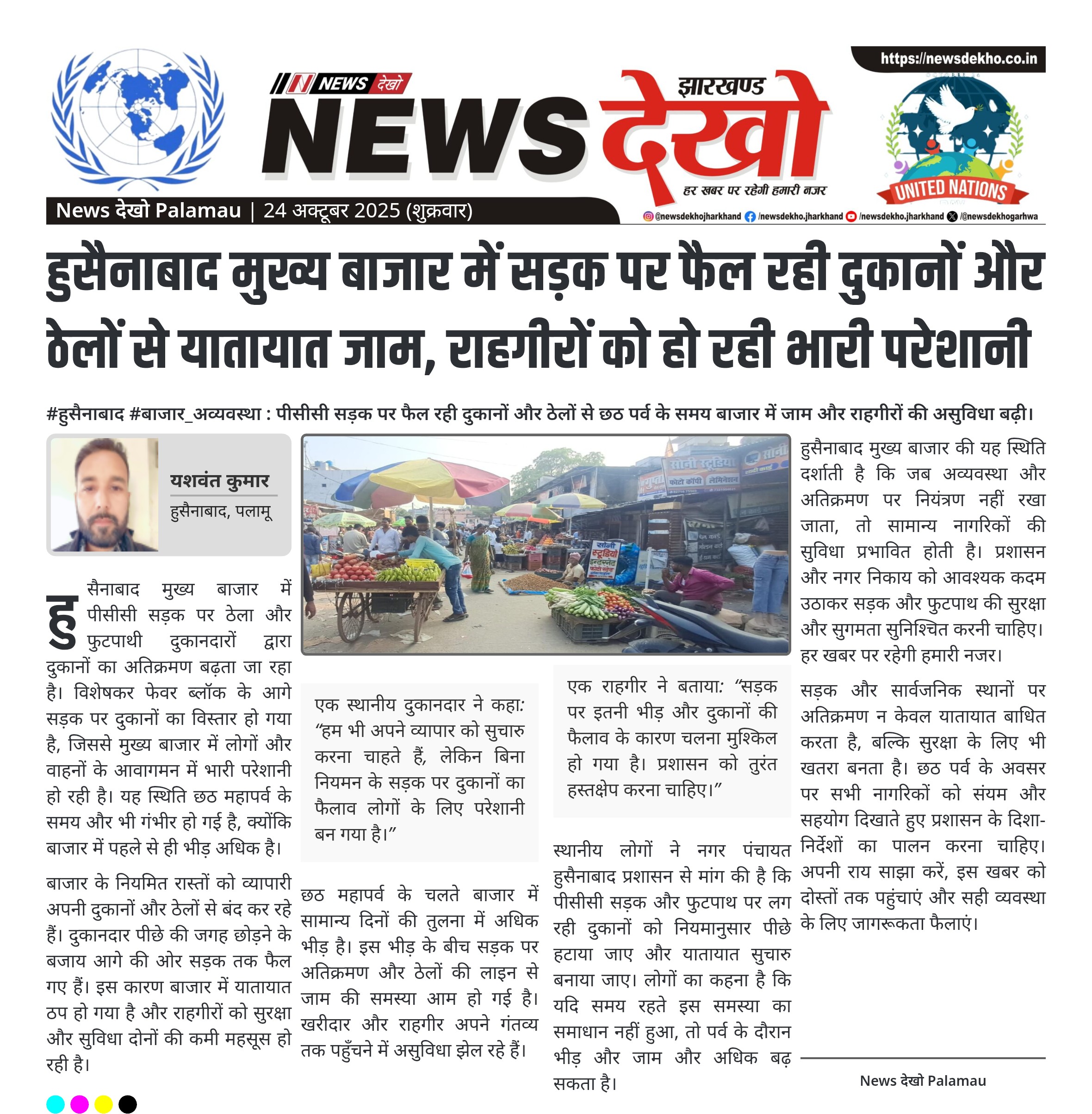 #हुसैनाबाद #बाजार_अव्यवस्था : पीसीसी सड़क पर फैल रही दुकानों और ठेलों से छठ पर्व के समय बाजार में जाम और राहगीरों की असुविधा बढ़ी। हुसैनाबाद मुख्य बाजार में पीसीसी सड़क पर दुकानों और ठेलों का अतिक्रमण। फुटपाथ और सड़क दोनों व्यापारी द्वारा कब्जे में लिए गए। छठ महापर्व के चलते भीड़ बढ़ी, यातायात व्यवस्था बाधित। नगर पंचायत प्रशासन से दुकानों को हटाने और सड़क को सुचारु बनाने की मांग। राहगीरों और खरीदारों में नाराजगी और असुविधा का माहौल। हुसैनाबाद मुख्य…