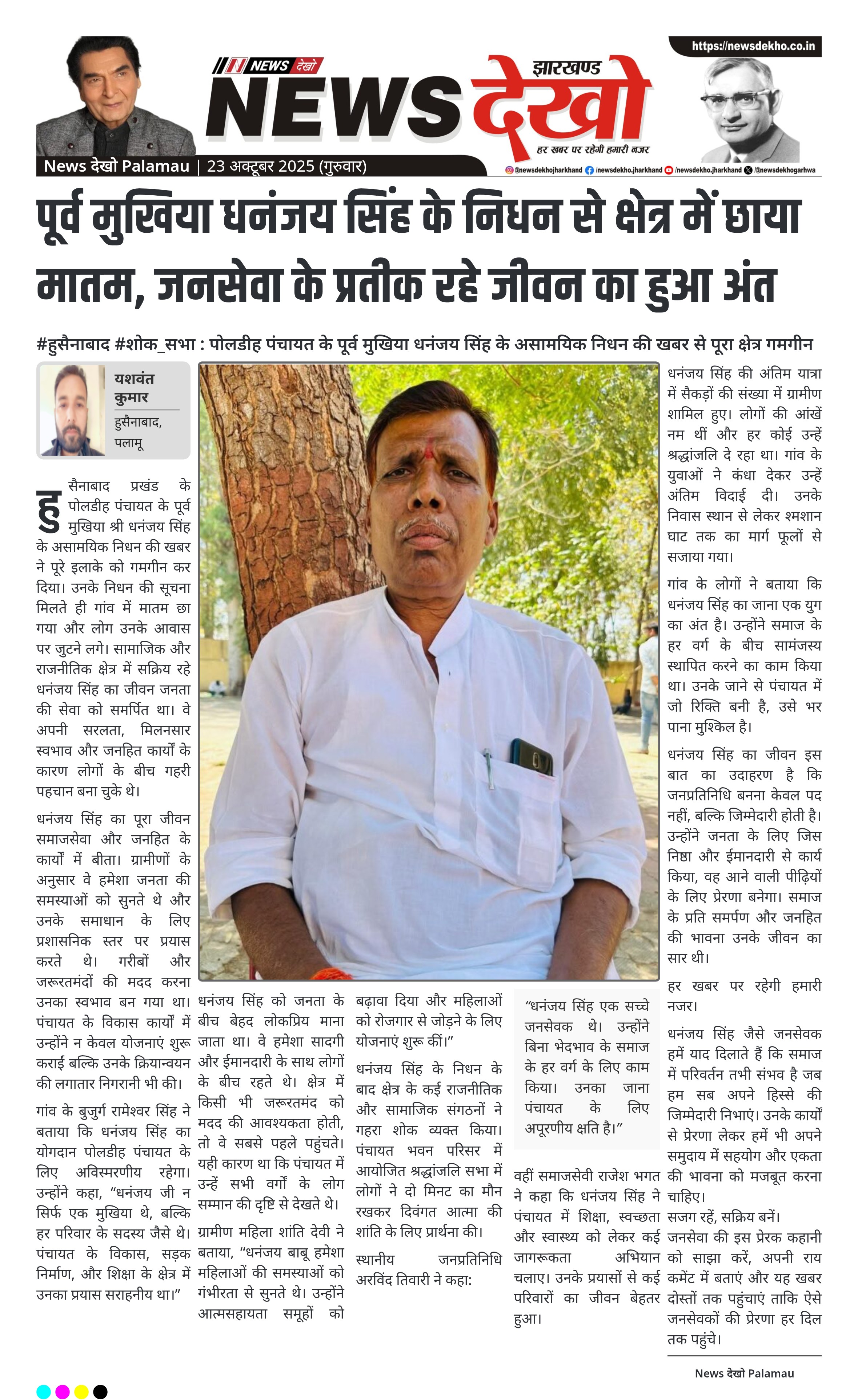 पूर्व मुखिया धनंजय सिंह के निधन से क्षेत्र में छाया मातम, जनसेवा के प्रतीक रहे जीवन का हुआ अंत