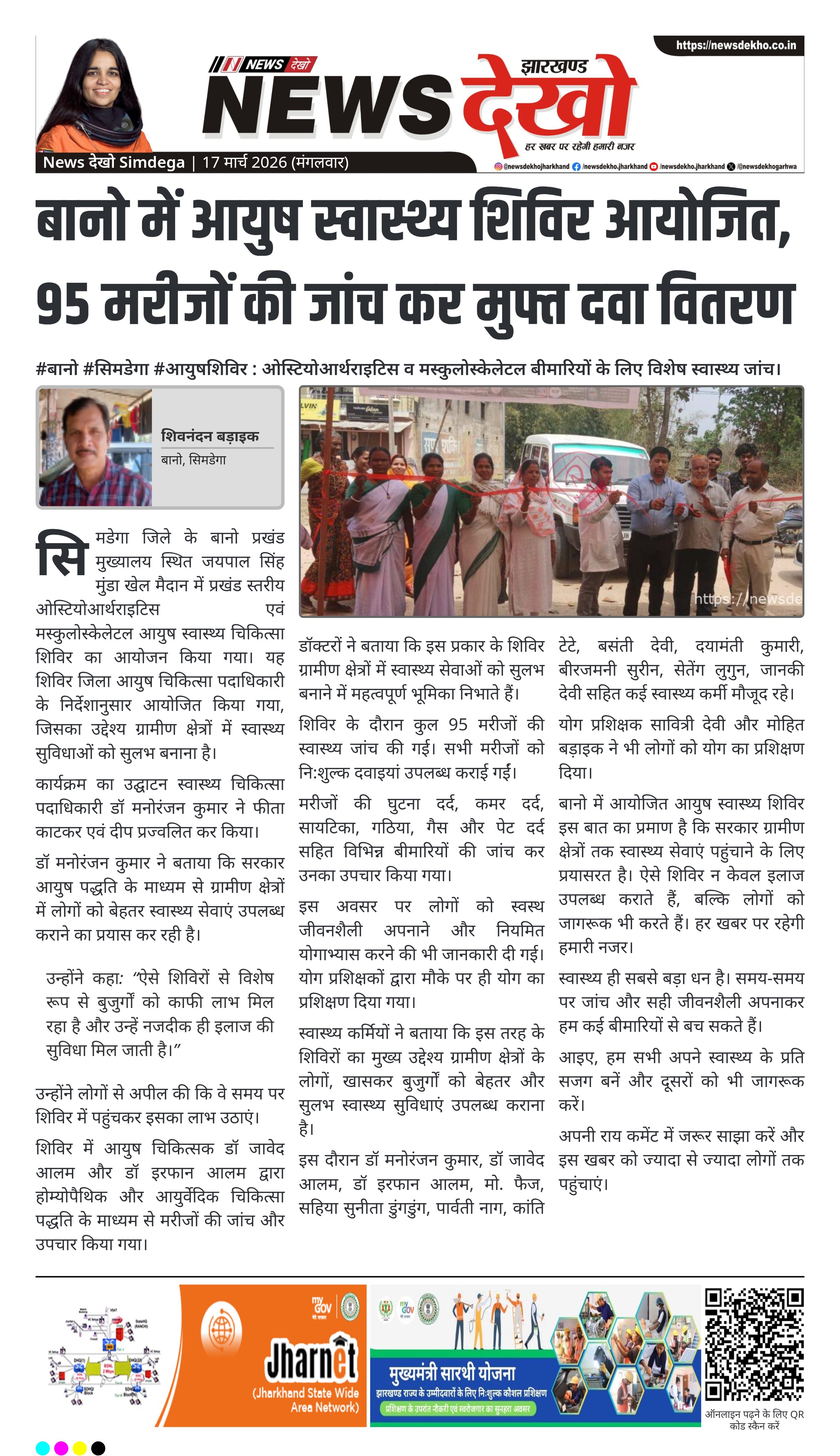 • जयपाल सिंह मुंडा खेल मैदान, बानो में आयुष स्वास्थ्य शिविर आयोजित।