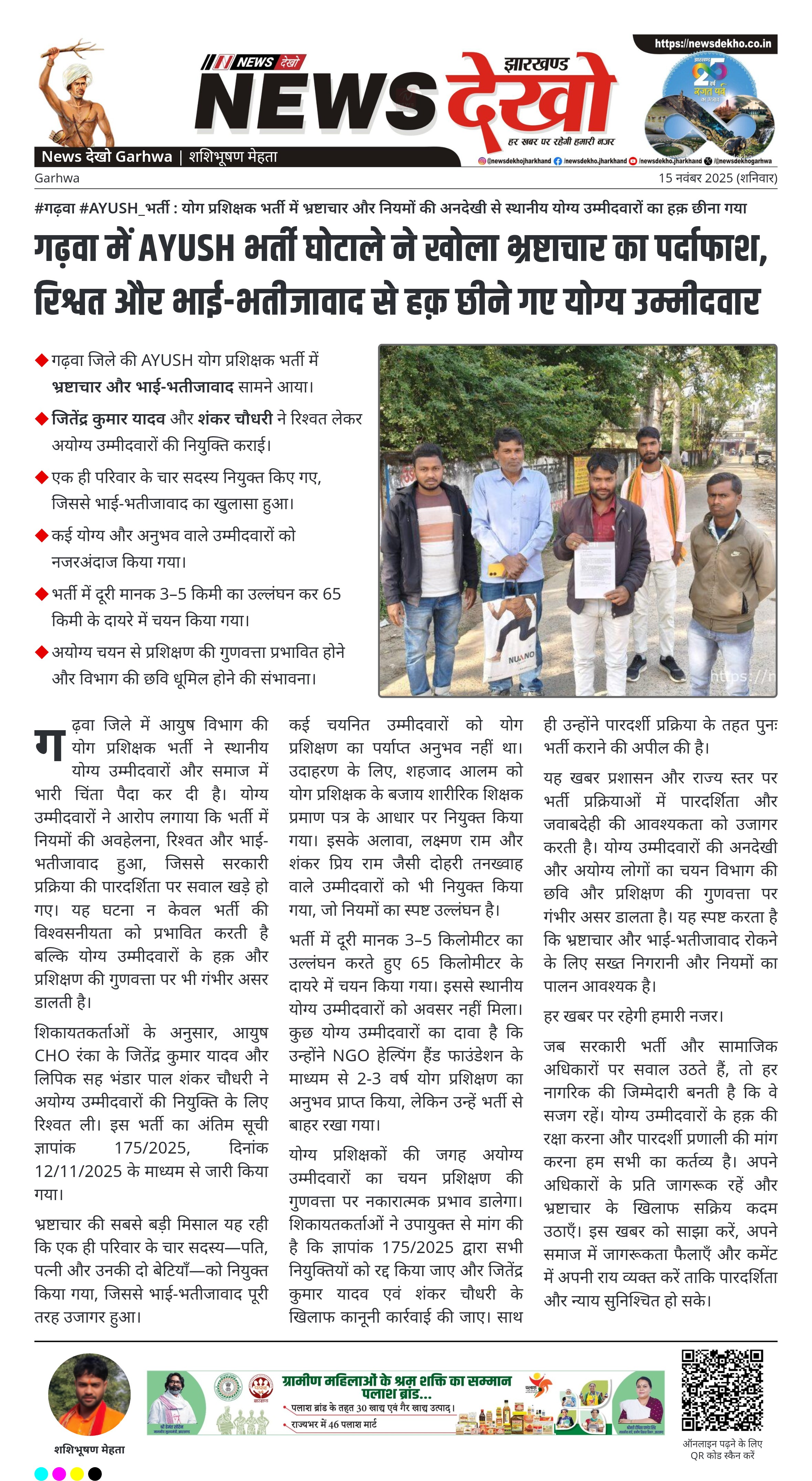 न्यूज़ देखो: गढ़वा AYUSH भर्ती घोटाला और भ्रष्टाचार का खुलासा