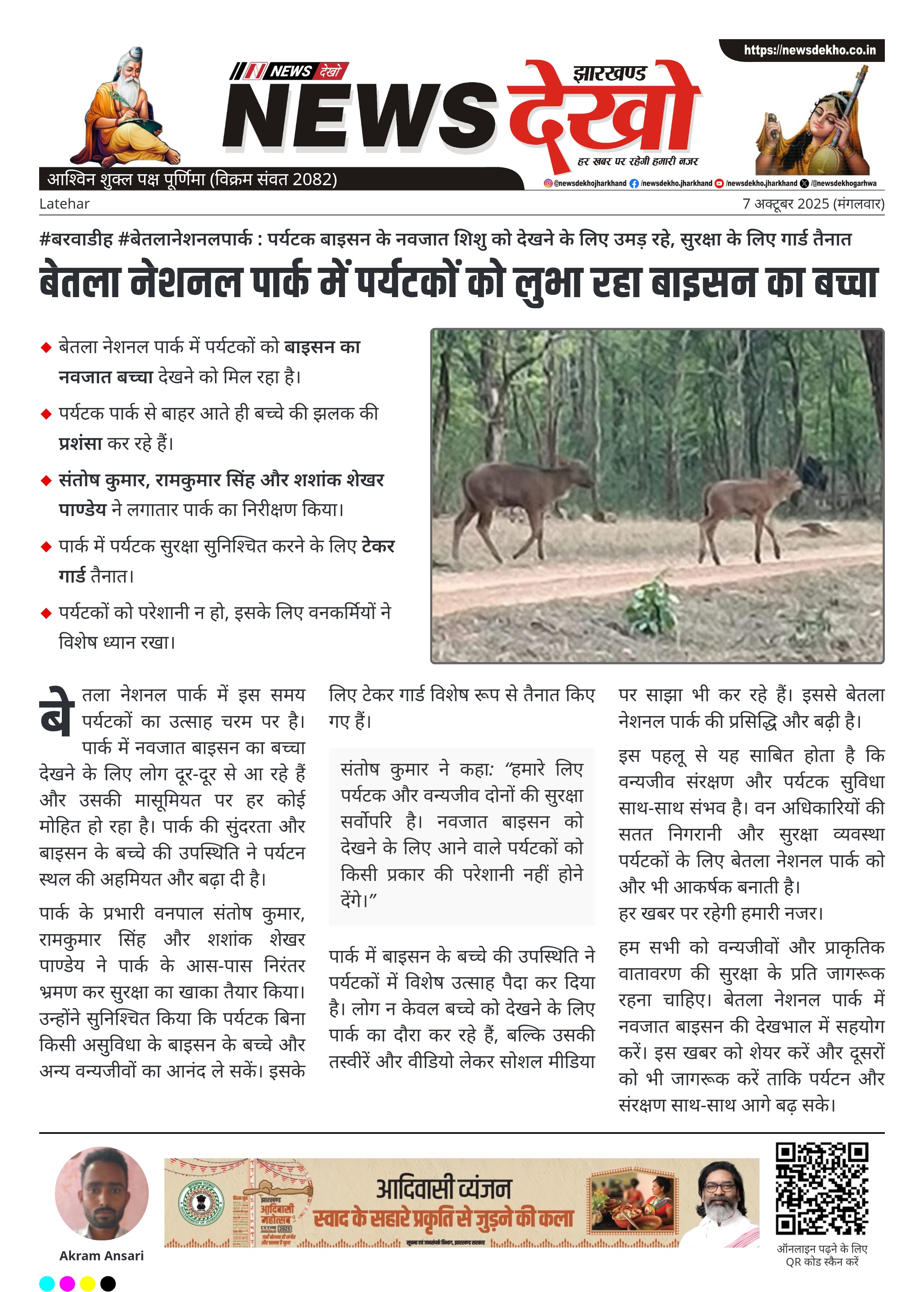 संतोष कुमार ने कहा: “हमारे लिए पर्यटक और वन्यजीव दोनों की सुरक्षा सर्वोपरि है। नवजात बाइसन को देखने के लिए आने वाले पर्यटकों को किसी प्रकार की परेशानी नहीं होने देंगे।”