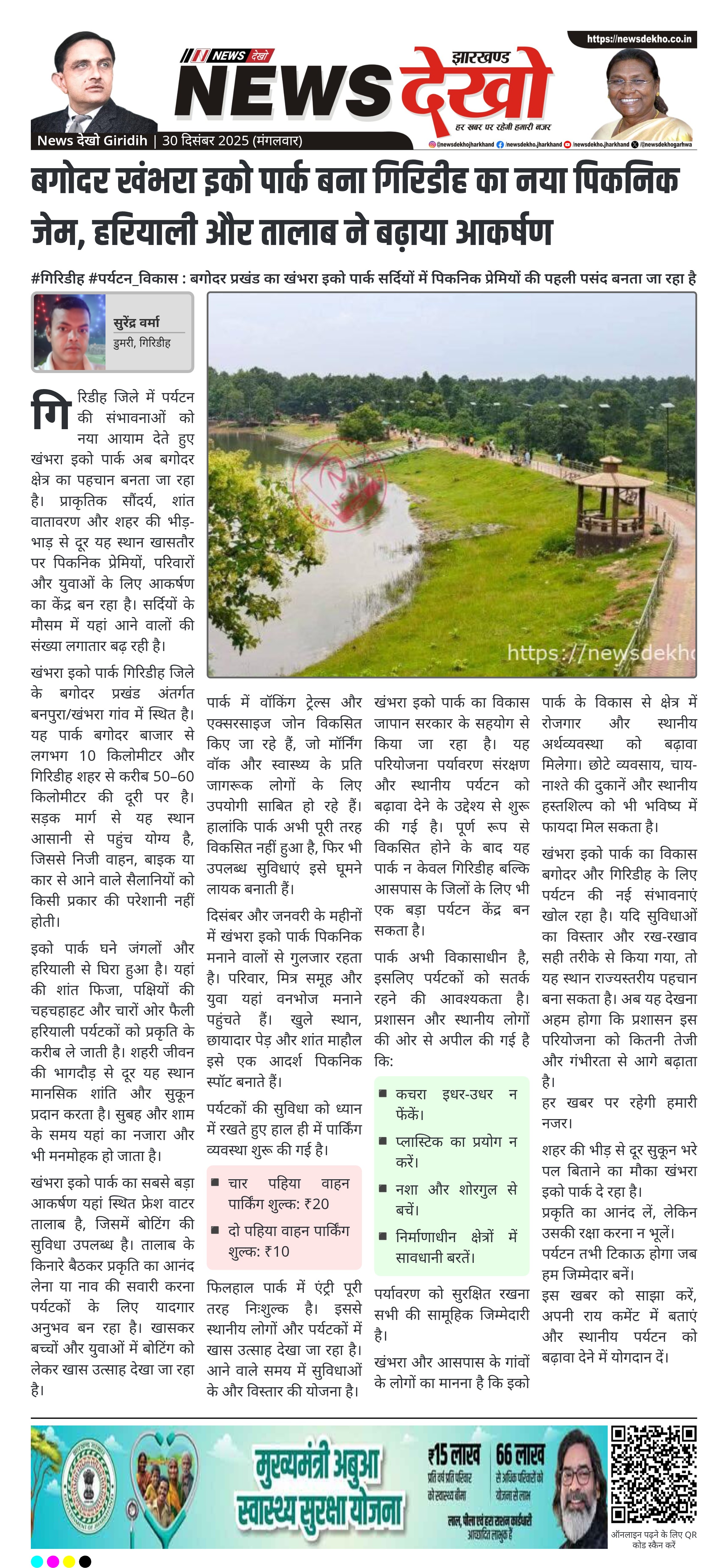 गिरिडीह जिले में पर्यटन की संभावनाओं को नया आयाम देते हुए खंभरा इको पार्क अब बगोदर क्षेत्र का पहचान बनता जा रहा है। प्राकृतिक सौंदर्य, शांत वातावरण और शहर की भीड़-भाड़ से दूर यह स्थान खासतौर पर पिकनिक प्रेमियों, परिवारों और युवाओं के लिए आकर्षण का केंद्र बन रहा है। सर्दियों के मौसम में यहां आने वालों की संख्या लगातार बढ़ रही है।