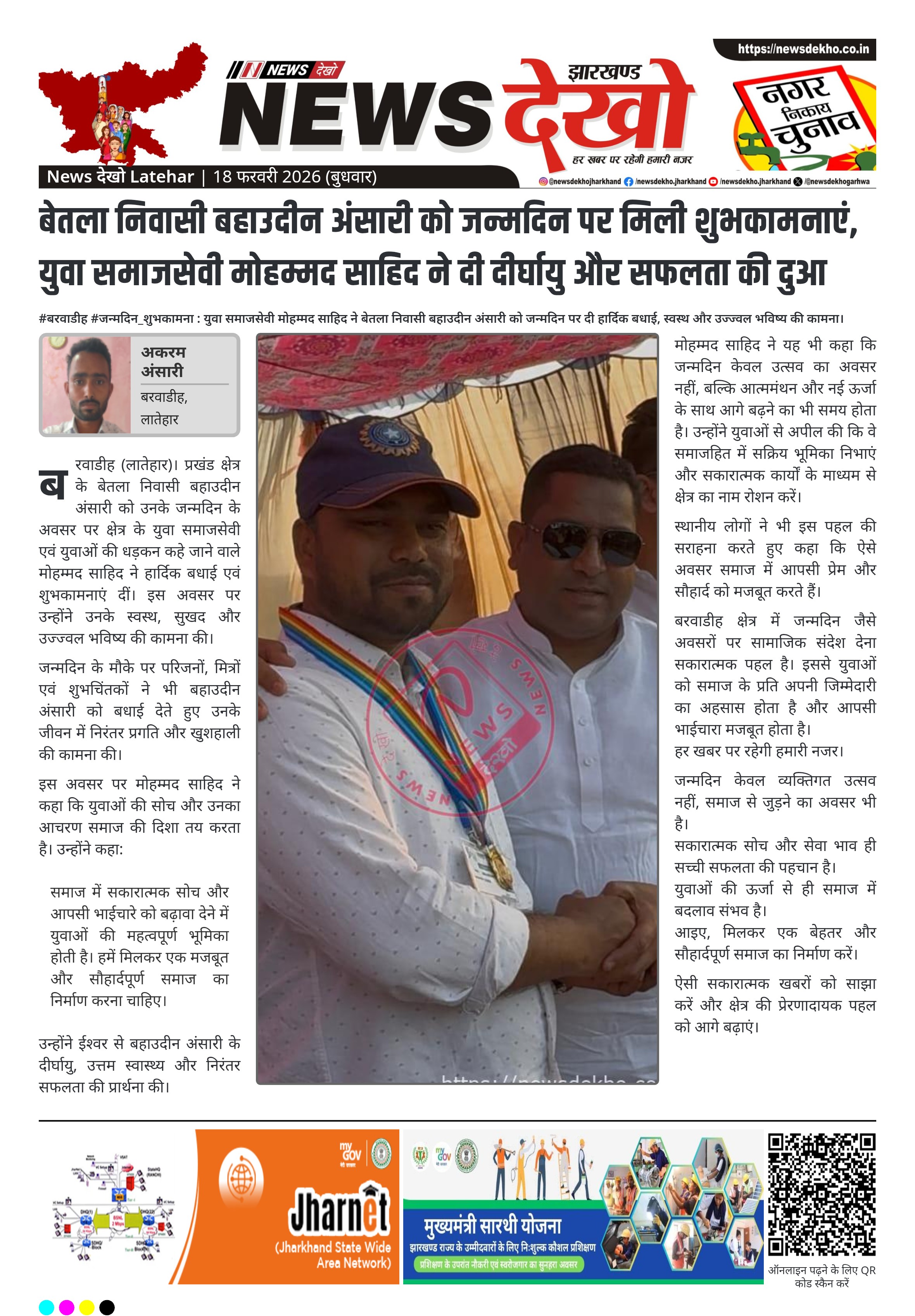 • बहाउदीन अंसारी, निवासी बेतला को जन्मदिन की बधाई।