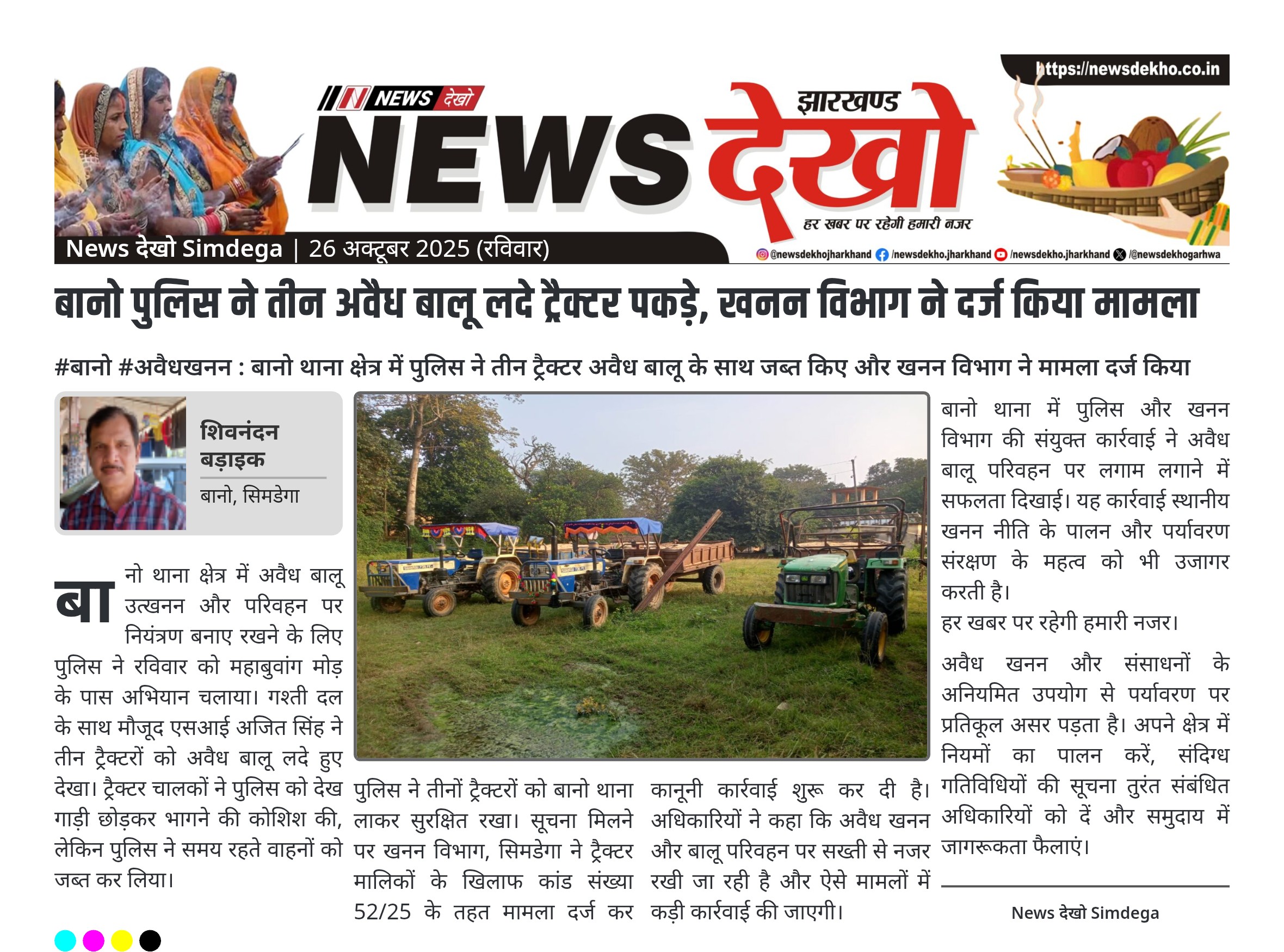 • खनन विभाग, सिमडेगा ने ट्रैक्टर मालिकों के खिलाफ कांड संख्या 52/25 के तहत मामला दर्ज किया।