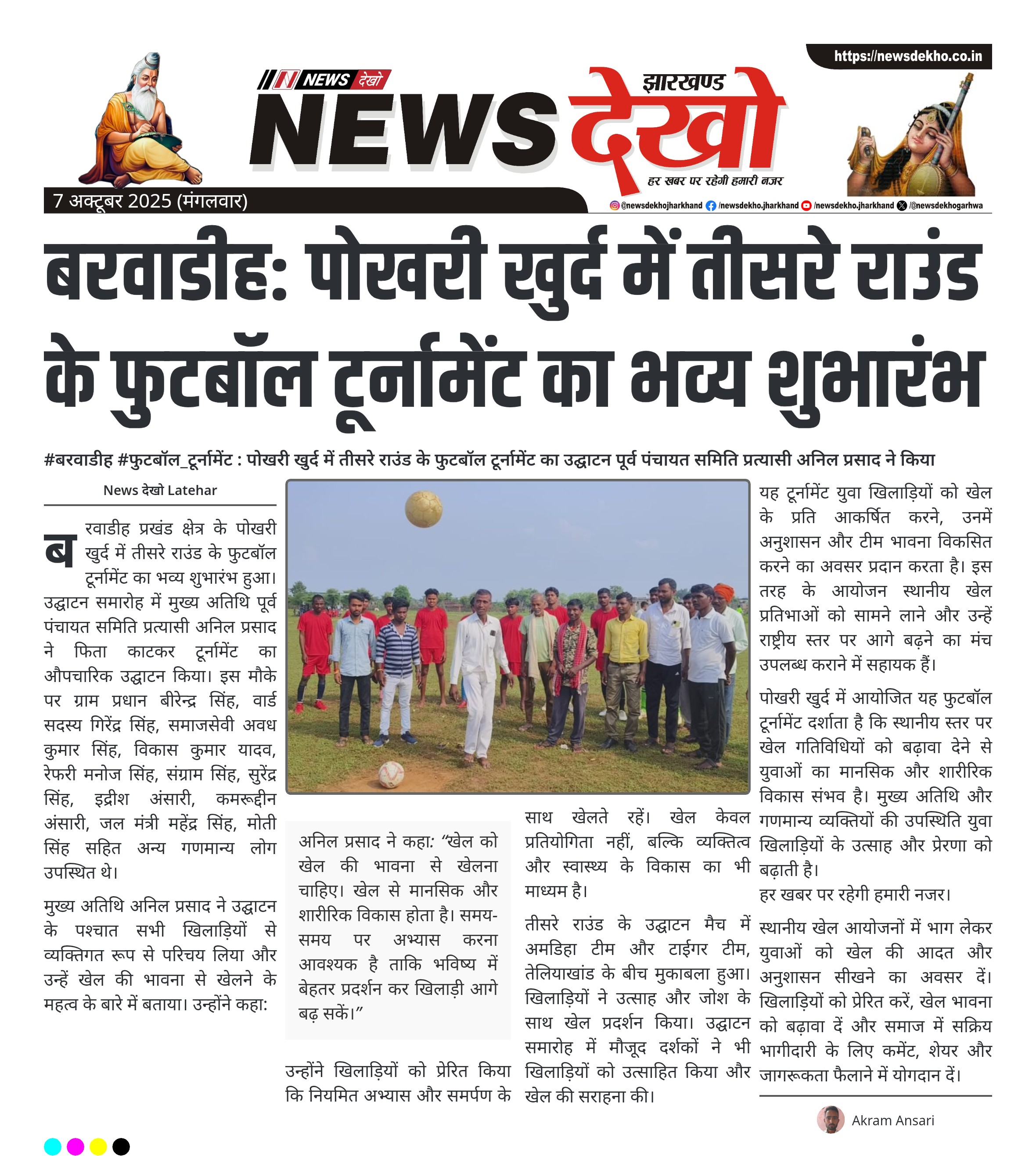 - तीसरे राउंड के फुटबॉल टूर्नामेंट का उद्घाटन पोखरी खुर्द में किया गया।