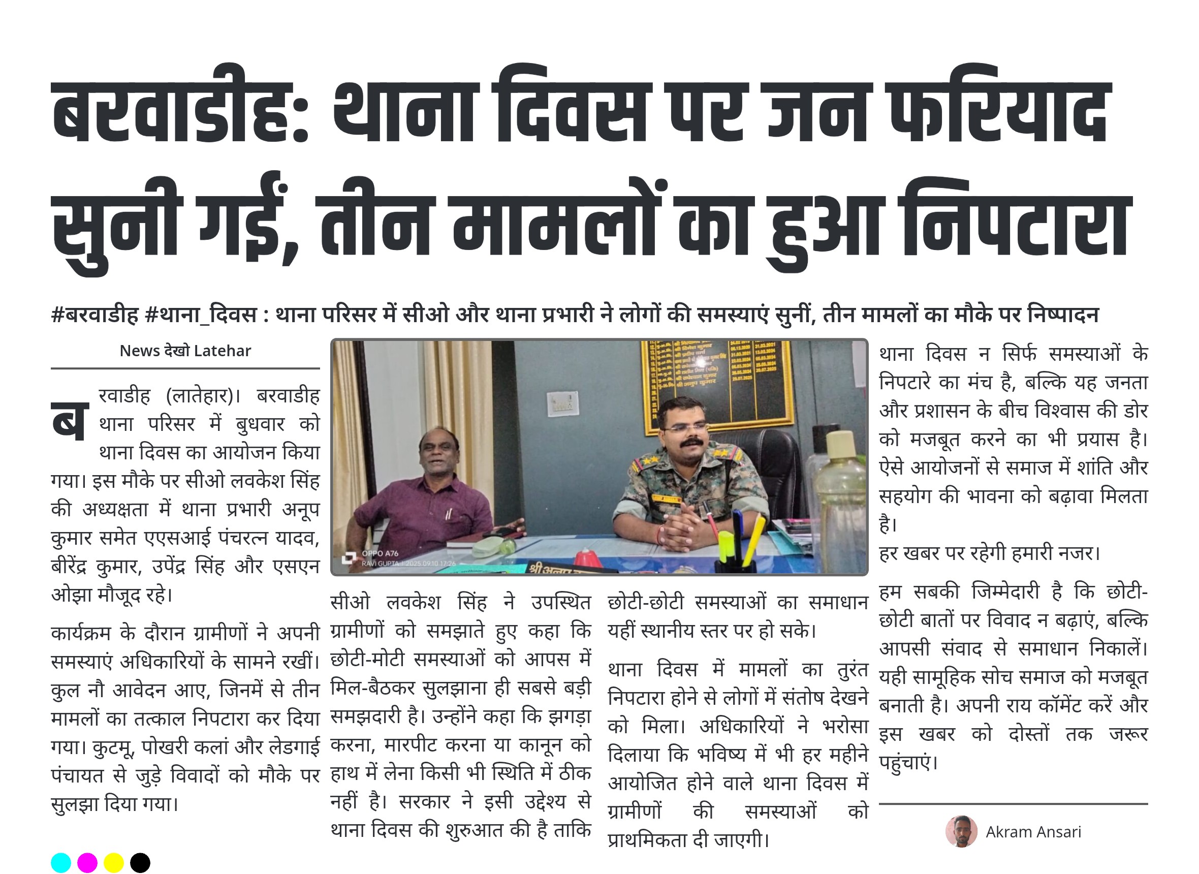 #बरवाडीह #थाना_दिवस : थाना परिसर में सीओ और थाना प्रभारी ने लोगों की समस्याएं सुनीं, तीन मामलों का मौके पर निष्पादन