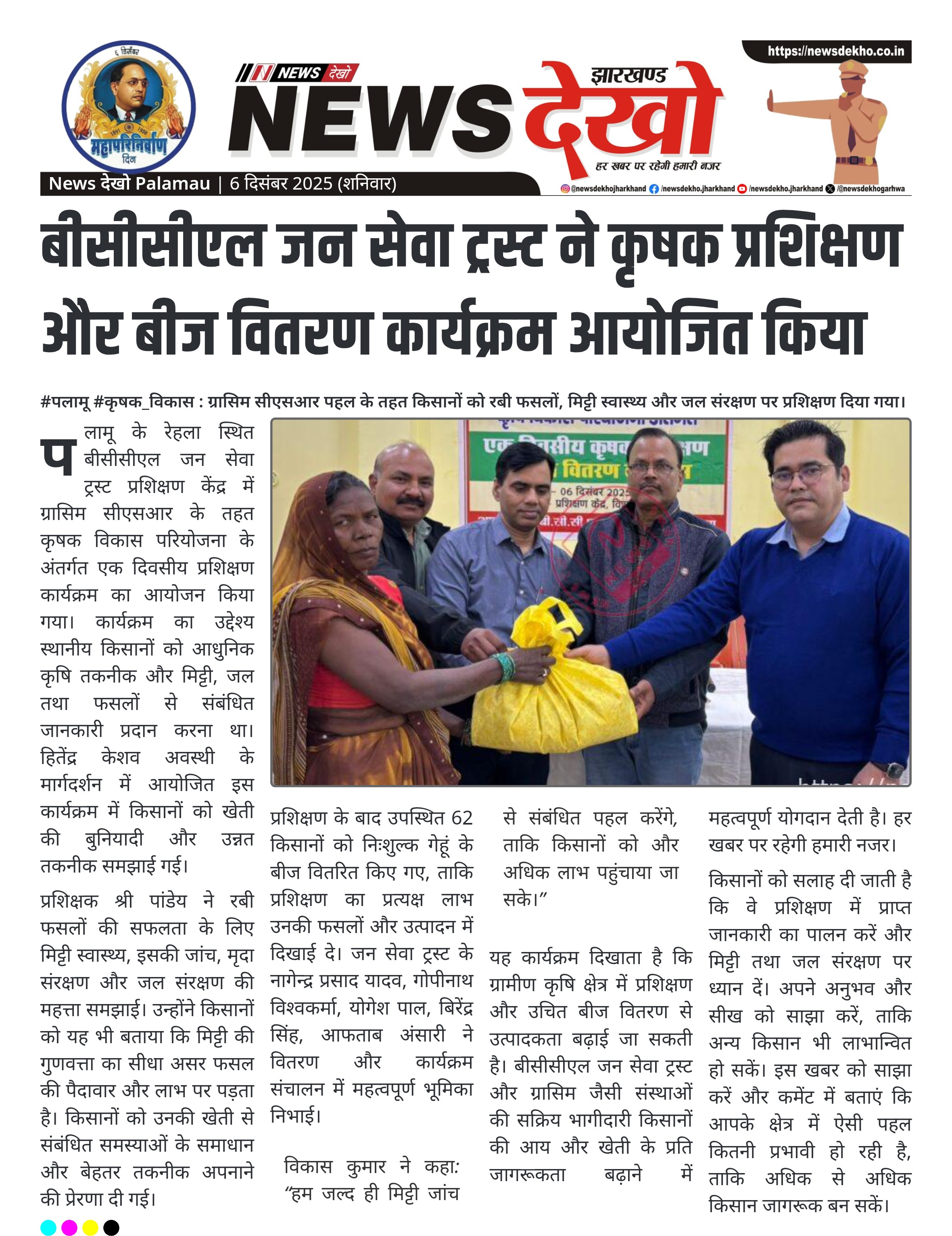 यह कार्यक्रम दिखाता है कि ग्रामीण कृषि क्षेत्र में प्रशिक्षण और उचित बीज वितरण से उत्पादकता बढ़ाई जा सकती है। बीसीसीएल जन सेवा ट्रस्ट और ग्रासिम जैसी संस्थाओं की सक्रिय भागीदारी किसानों की आय और खेती के प्रति जागरूकता बढ़ाने में महत्वपूर्ण योगदान देती है। हर खबर पर रहेगी हमारी नजर।