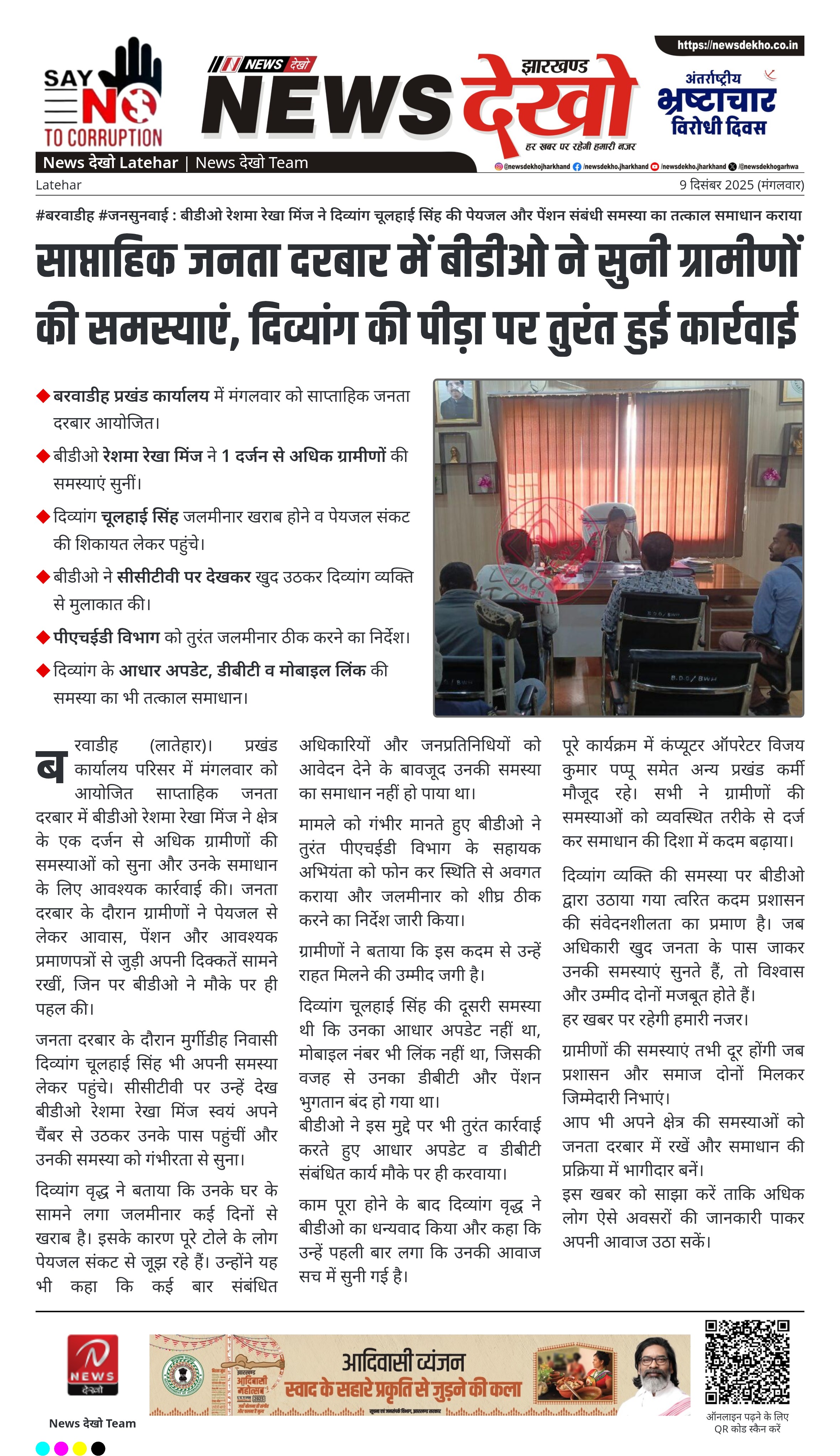 #बरवाडीह #जनसुनवाई : बीडीओ रेशमा रेखा मिंज ने दिव्यांग चूलहाई सिंह की पेयजल और पेंशन संबंधी समस्या का तत्काल समाधान कराया
