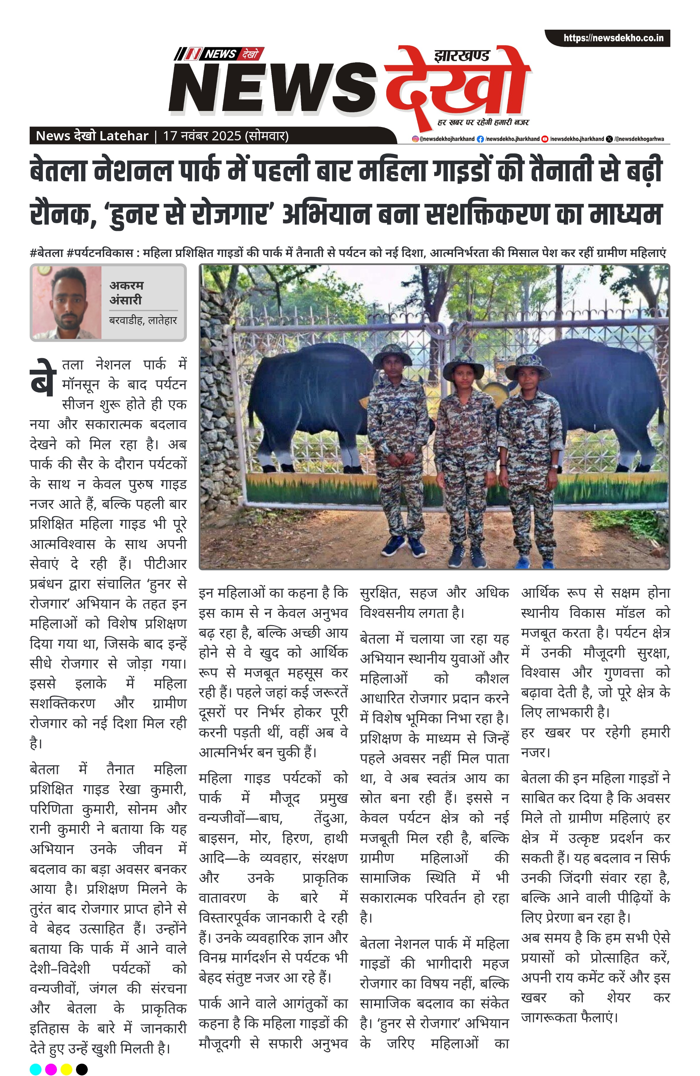 बेतला नेशनल पार्क में पहली बार महिला गाइडों की तैनाती से बढ़ी रौनक, ‘हुनर से रोजगार’ अभियान बना सशक्तिकरण का माध्यम