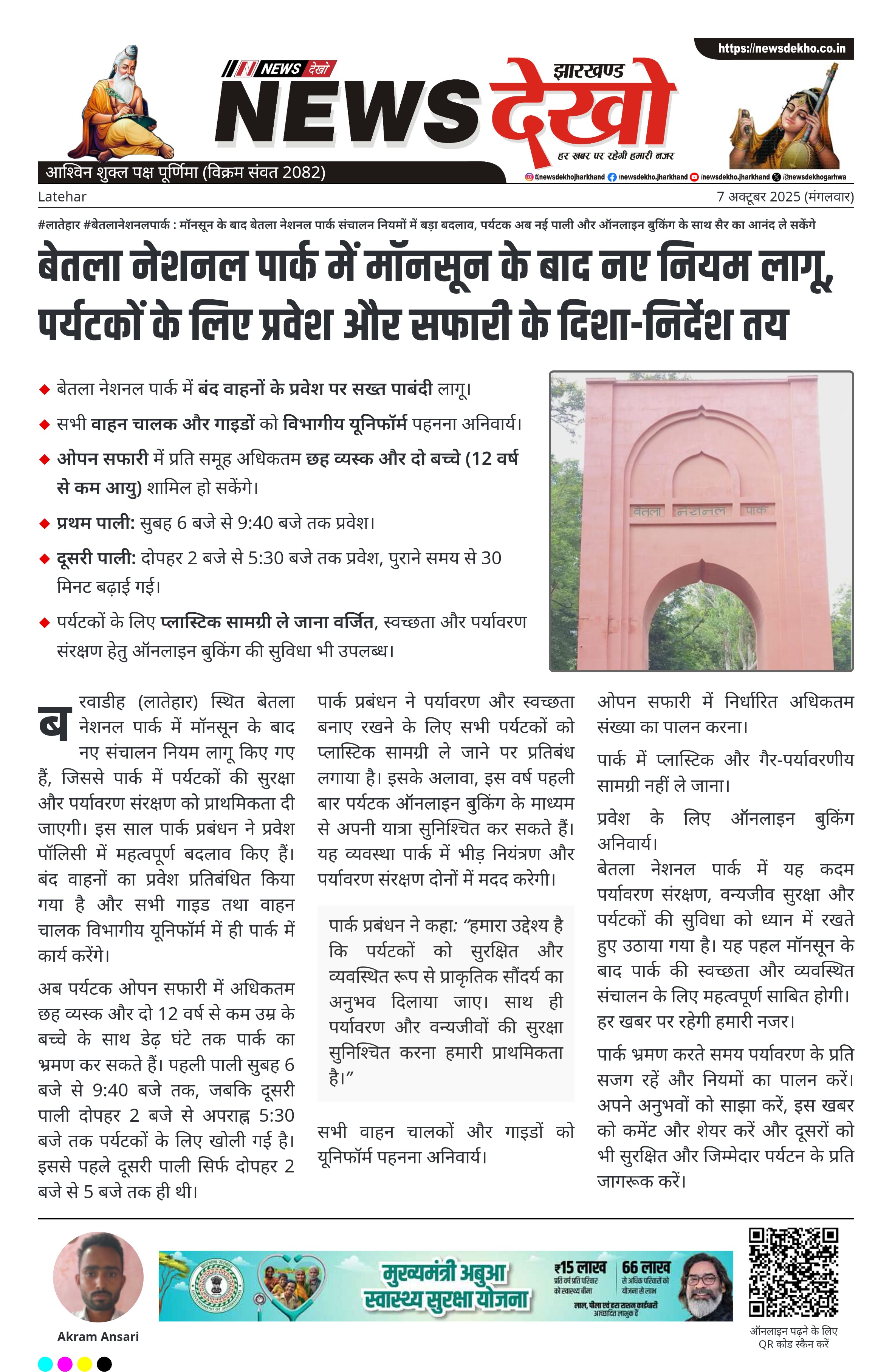 बेतला नेशनल पार्क में यह कदम पर्यावरण संरक्षण, वन्यजीव सुरक्षा और पर्यटकों की सुविधा को ध्यान में रखते हुए उठाया गया है। यह पहल मॉनसून के बाद पार्क की स्वच्छता और व्यवस्थित संचालन के लिए महत्वपूर्ण साबित होगी।