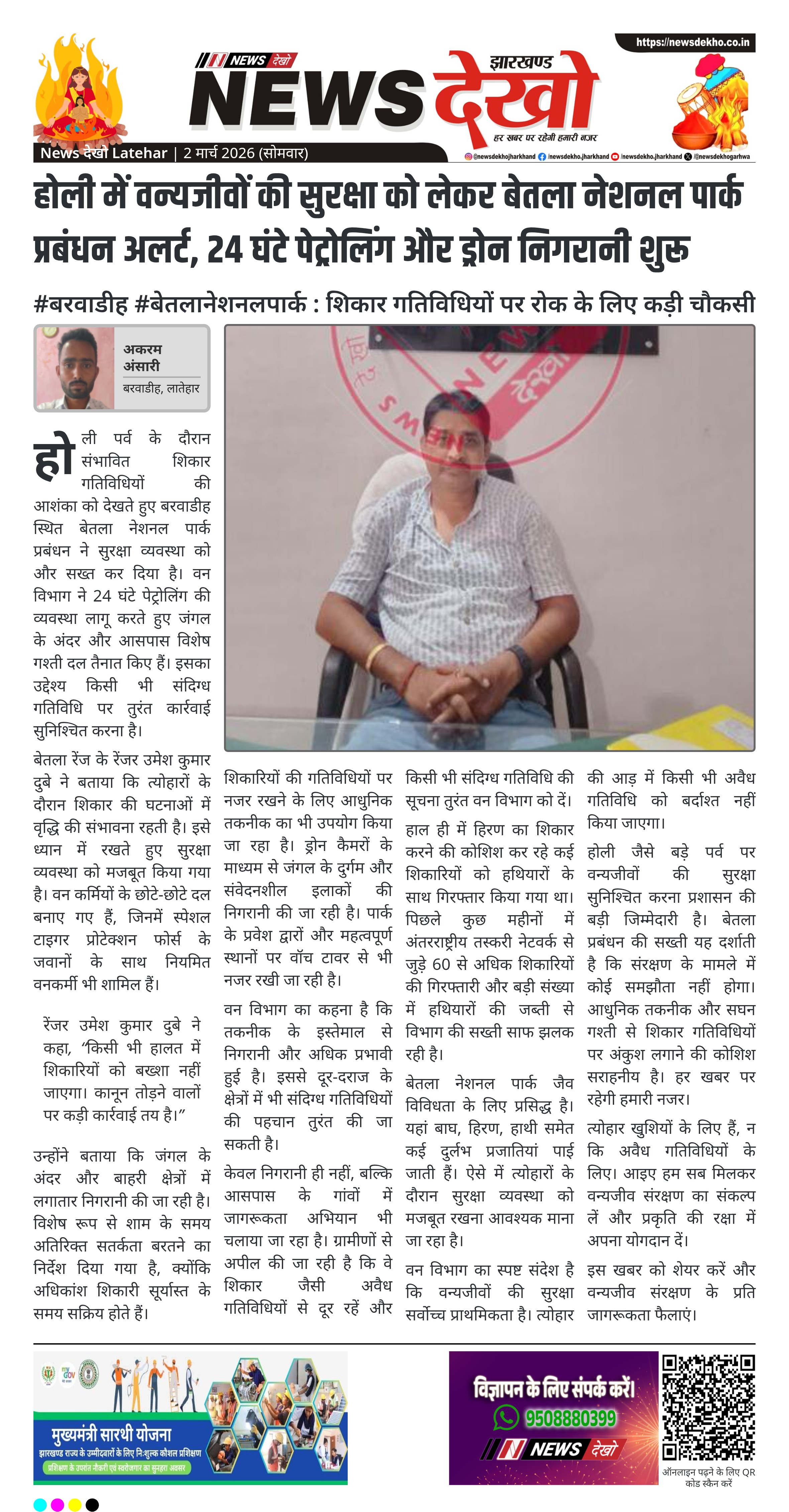 - बेतला नेशनल पार्क में 24 घंटे पेट्रोलिंग शुरू।