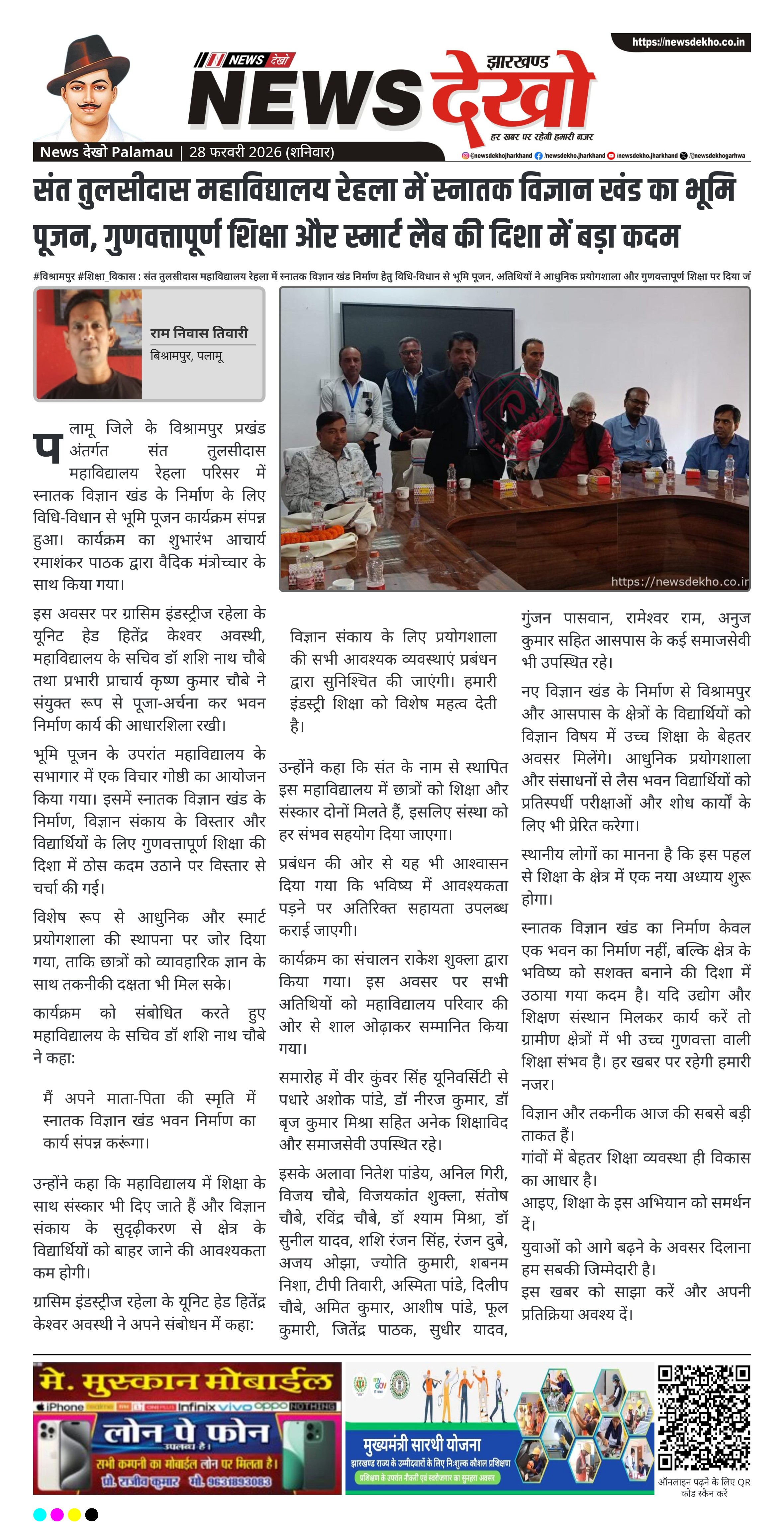 - संत तुलसीदास महाविद्यालय रेहला में स्नातक विज्ञान खंड का भूमि पूजन।
