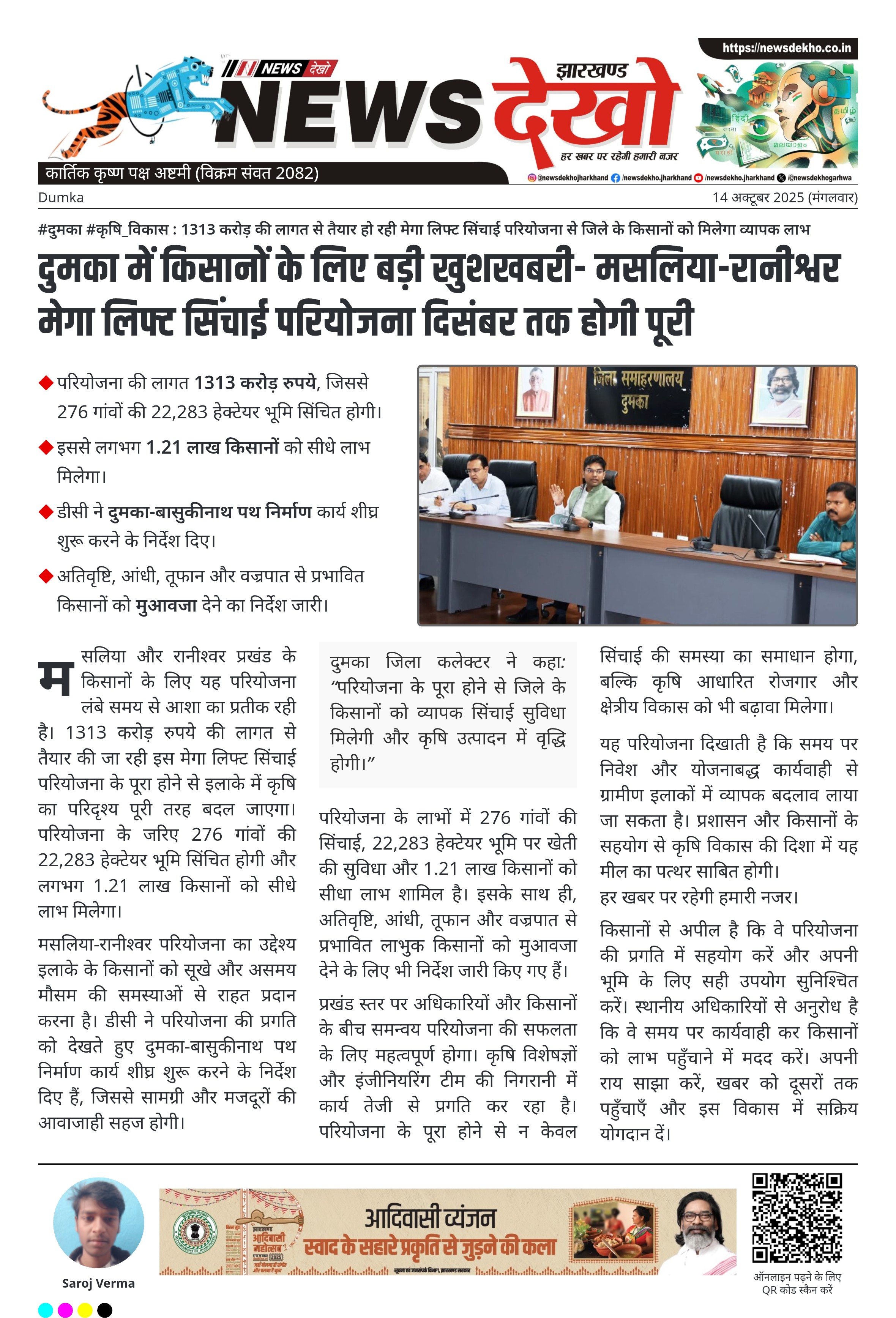 न्यूज़ देखो: दुमका की मेगा सिंचाई परियोजना किसानों के जीवन में बदलाव लाएगी