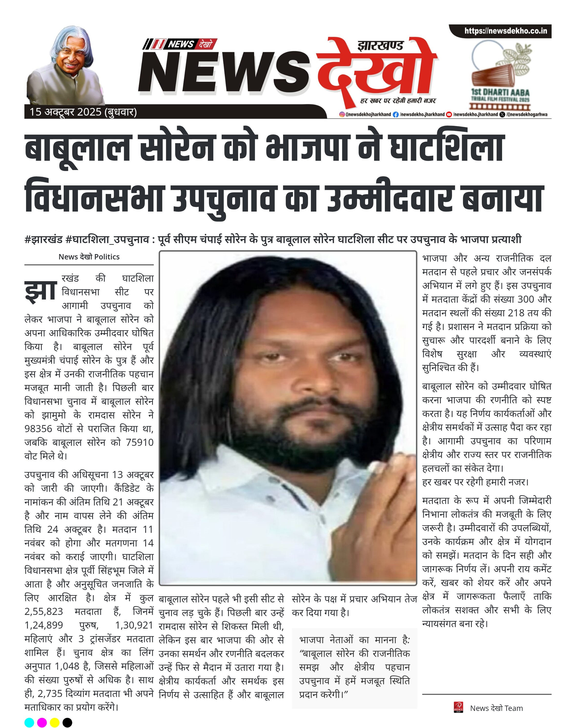 #झारखंड #घाटशिला_उपचुनाव : पूर्व सीएम चंपाई सोरेन के पुत्र बाबूलाल सोरेन घाटशिला सीट पर उपचुनाव के भाजपा प्रत्याशी