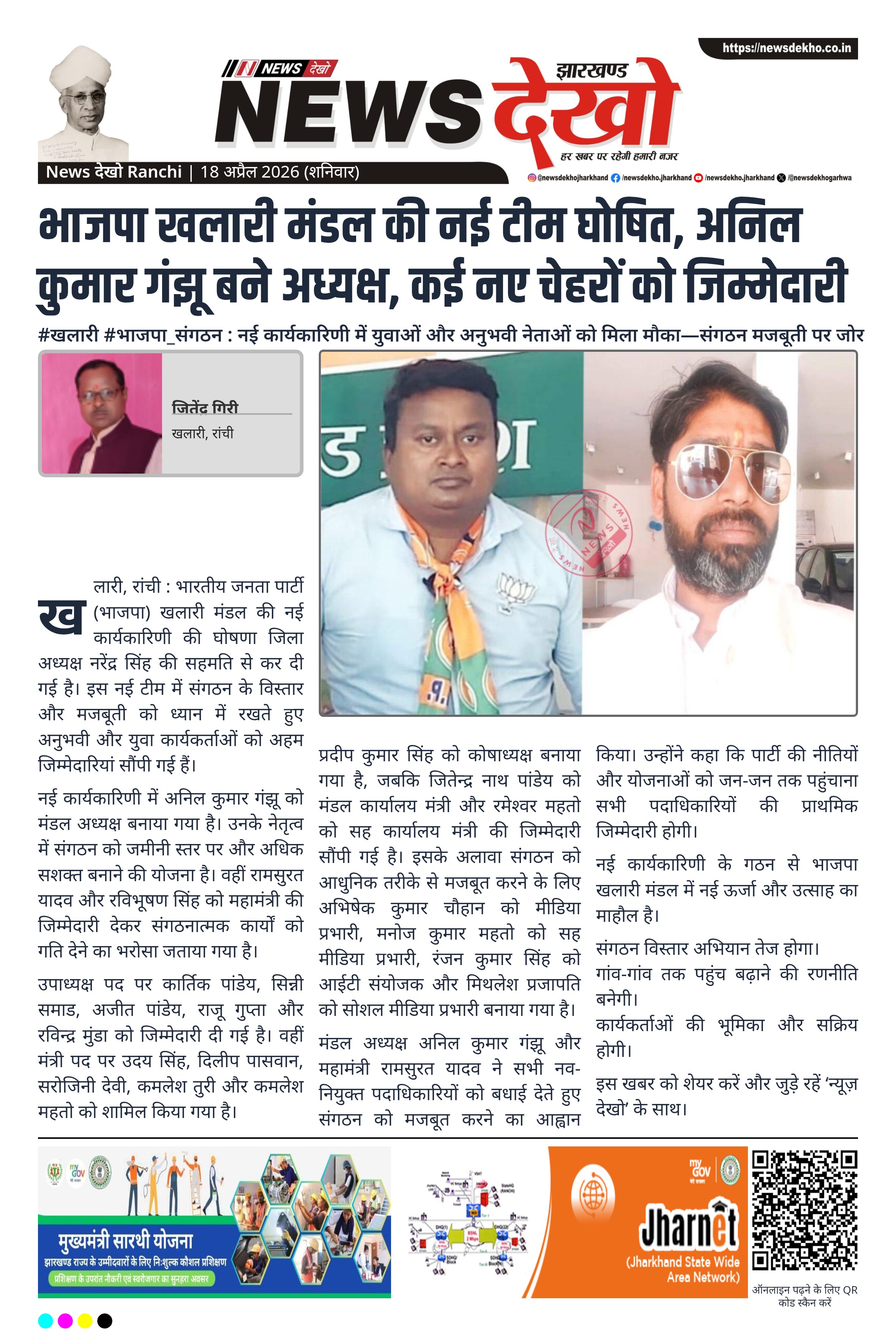 - अनिल कुमार गंझू बने खलारी मंडल अध्यक्ष।