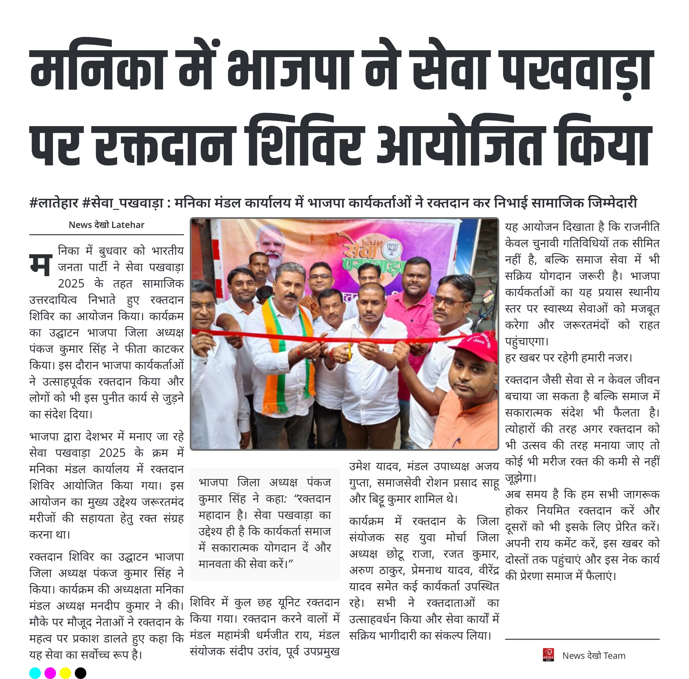 #लातेहार #सेवा_पखवाड़ा : मनिका मंडल कार्यालय में भाजपा कार्यकर्ताओं ने रक्तदान कर निभाई सामाजिक जिम्मेदारी