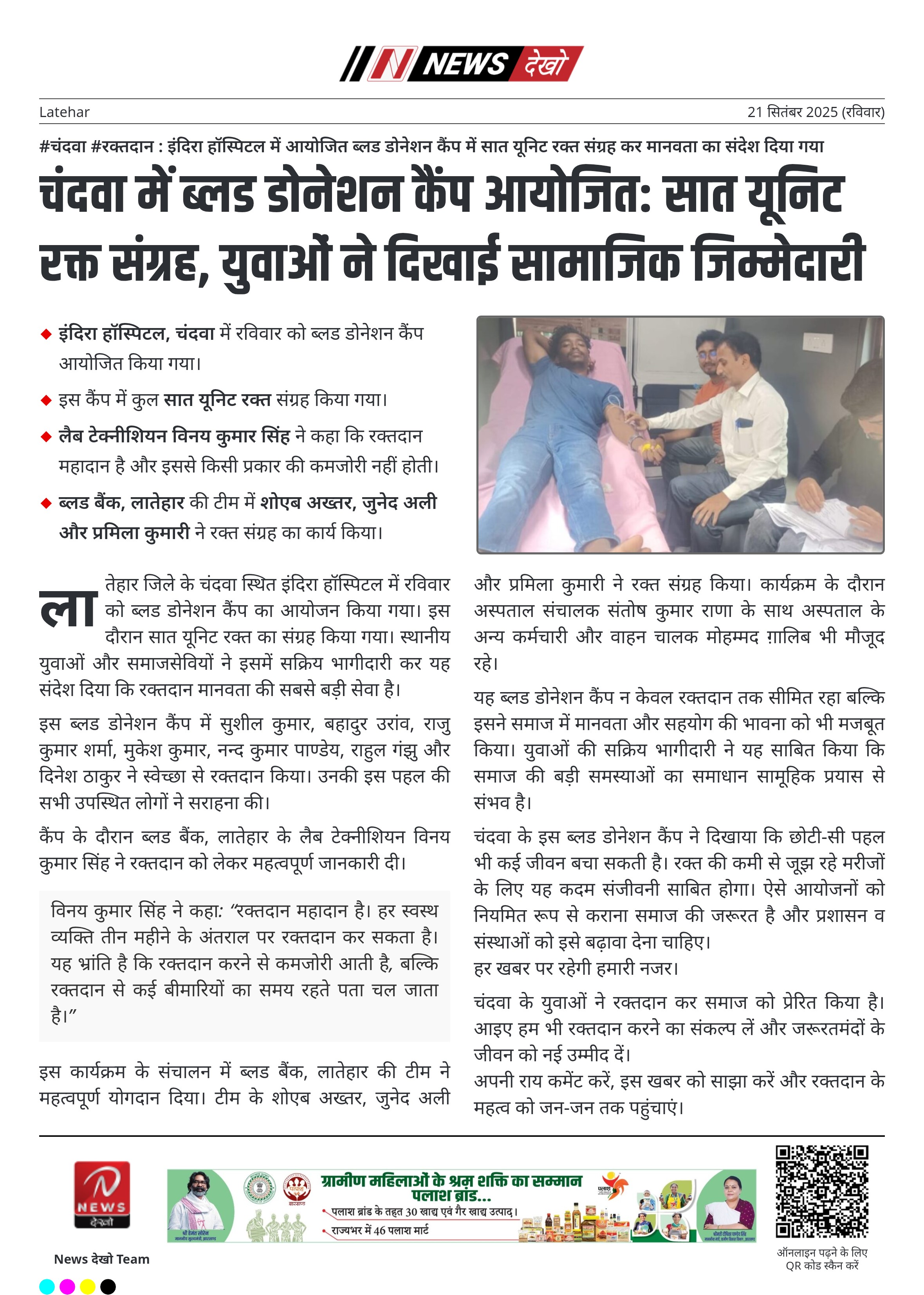 न्यूज़ देखो: रक्तदान से जीवन बचाने का संकल्प