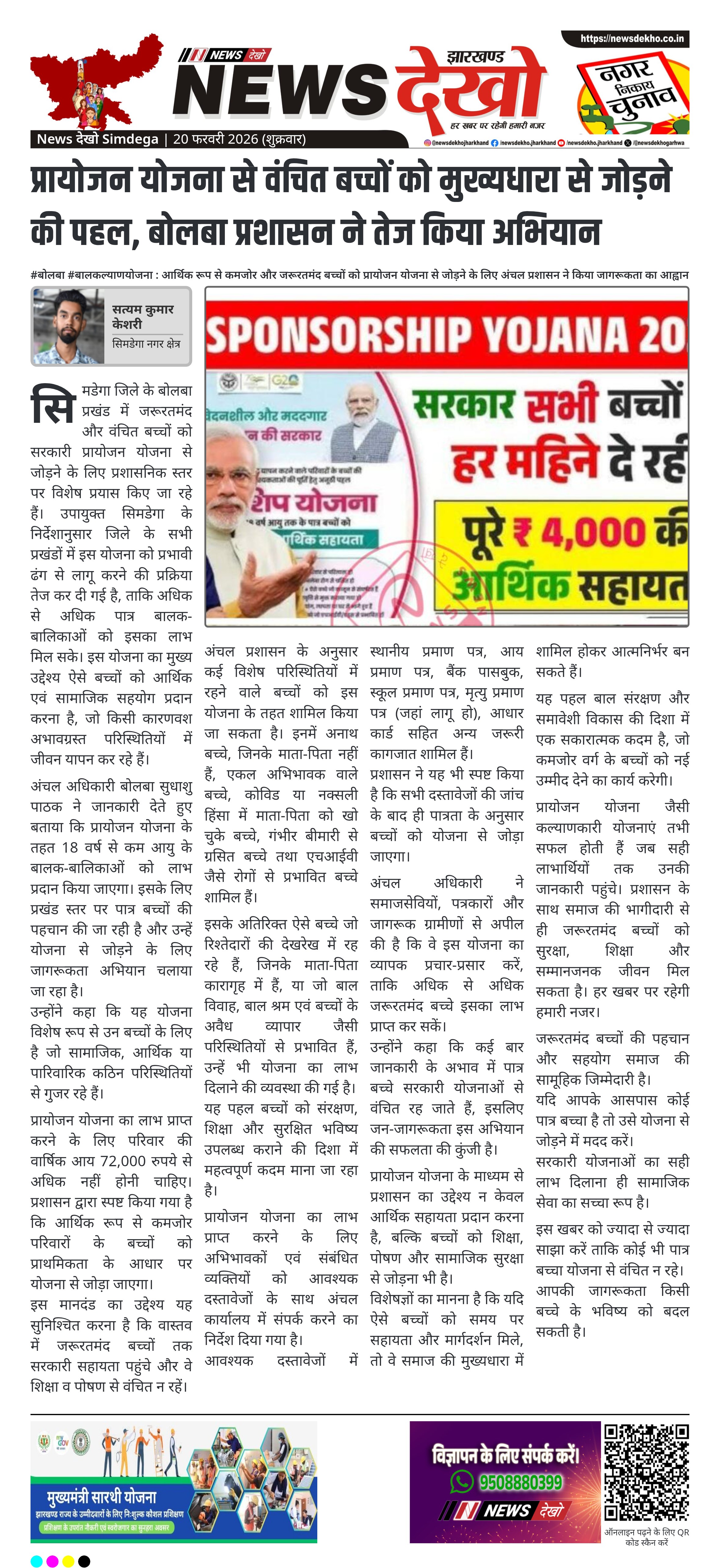 प्रायोजन योजना जैसी कल्याणकारी योजनाएं तभी सफल होती हैं जब सही लाभार्थियों तक उनकी जानकारी पहुंचे। प्रशासन के साथ समाज की भागीदारी से ही जरूरतमंद बच्चों को सुरक्षा, शिक्षा और सम्मानजनक जीवन मिल सकता है। हर खबर पर रहेगी हमारी नजर।