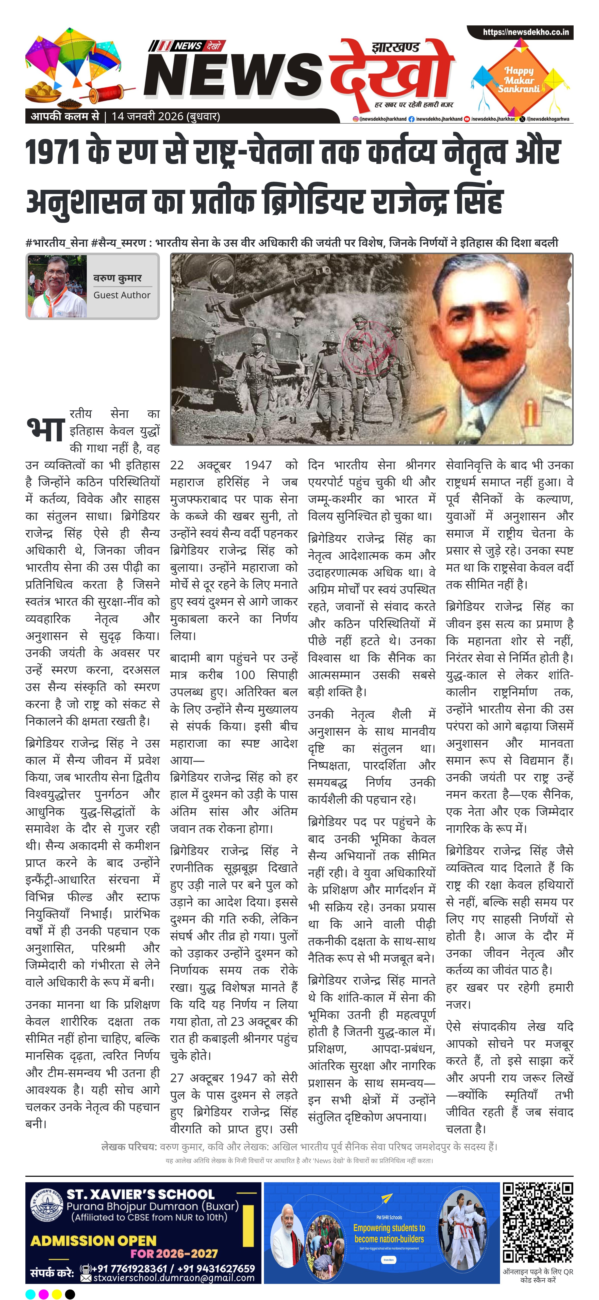 भारतीय सेना का इतिहास केवल युद्धों की गाथा नहीं है, वह उन व्यक्तित्वों का भी इतिहास है जिन्होंने कठिन परिस्थितियों में कर्तव्य, विवेक और साहस का संतुलन साधा। ब्रिगेडियर राजेन्द्र सिंह ऐसे ही सैन्य अधिकारी थे, जिनका जीवन भारतीय सेना की उस पीढ़ी का प्रतिनिधित्व करता है जिसने स्वतंत्र भारत की सुरक्षा-नींव को व्यवहारिक नेतृत्व और अनुशासन से सुदृढ़ किया। उनकी जयंती के अवसर पर उन्हें स्मरण करना, दरअसल उस सैन्य संस्कृति को स्मरण करना है जो राष्ट्र को संकट से निकालने की क्षमता रखती है।