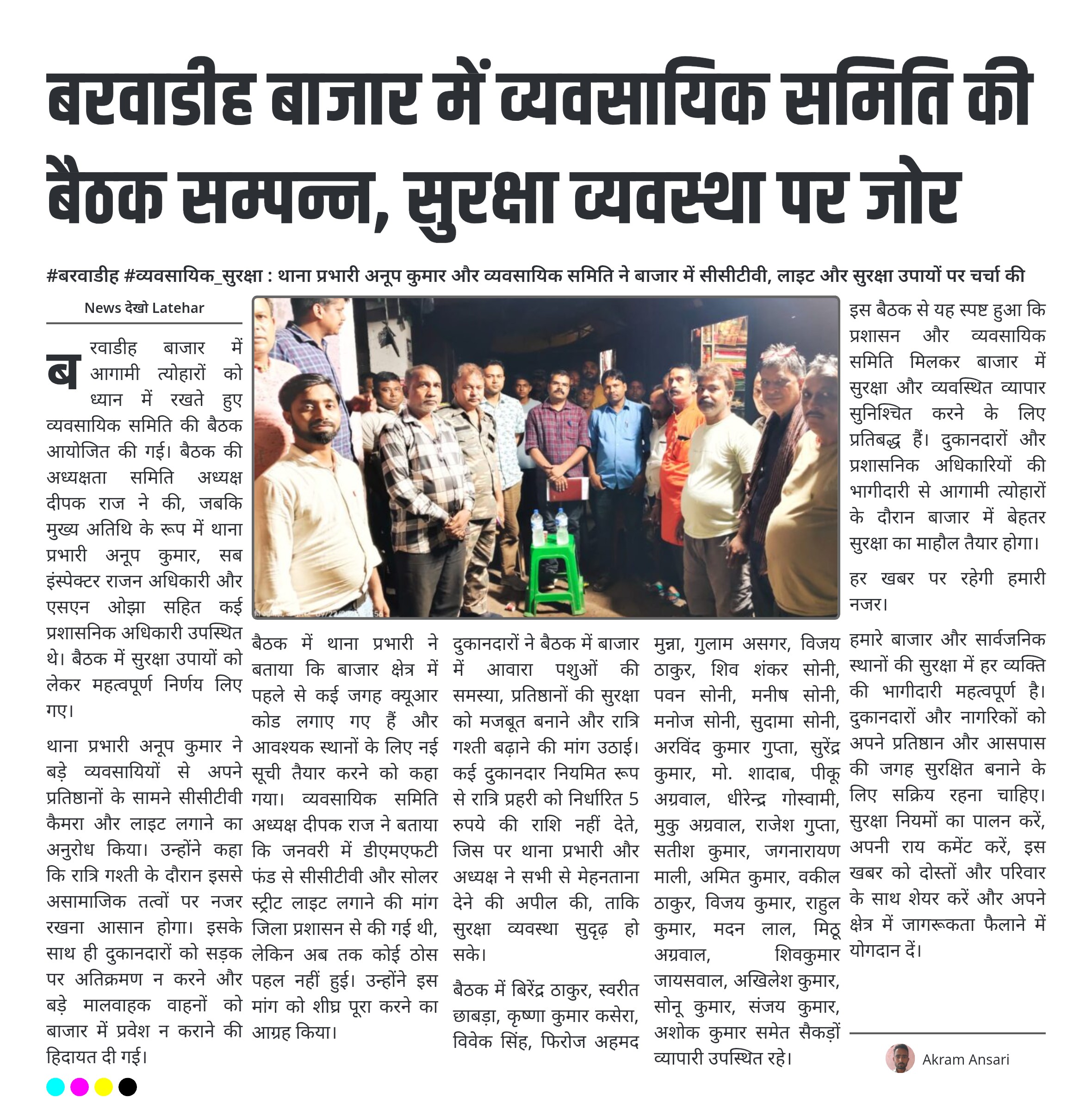 न्यूज़ देखो: बरवाडीह बाजार में सुरक्षा उपायों को लेकर व्यवसायिक समिति की सक्रिय पहल