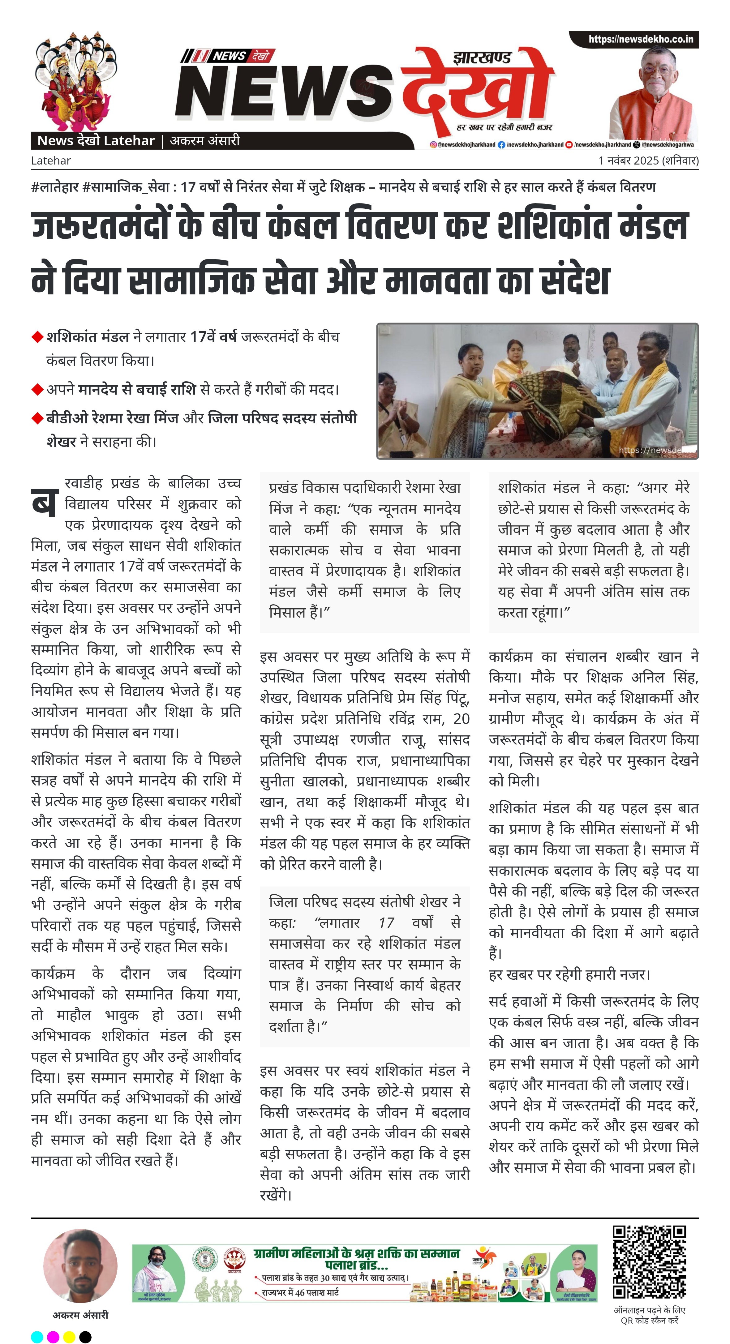 #लातेहार #सामाजिक_सेवा : 17 वर्षों से निरंतर सेवा में जुटे शिक्षक – मानदेय से बचाई राशि से हर साल करते हैं कंबल वितरण