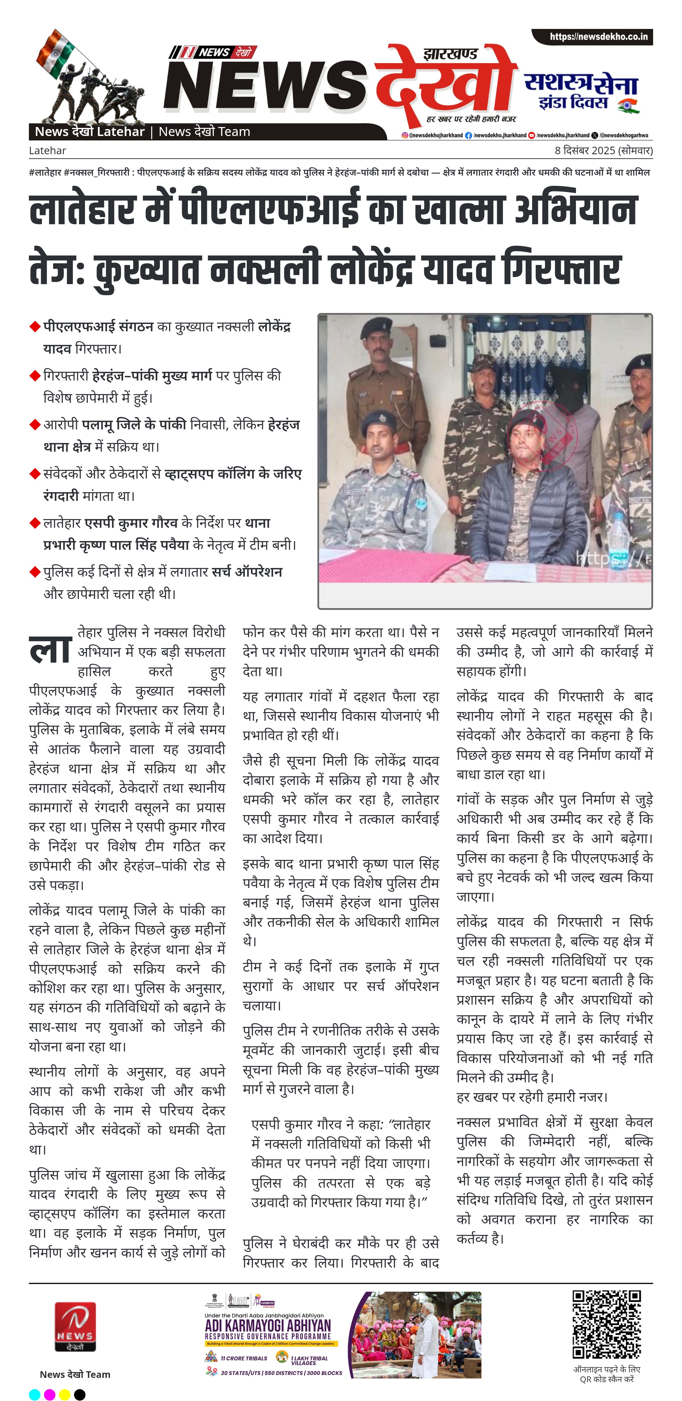 न्यूज़ देखो: नक्सल-मुक्त लातेहार की दिशा में बड़ा कदम