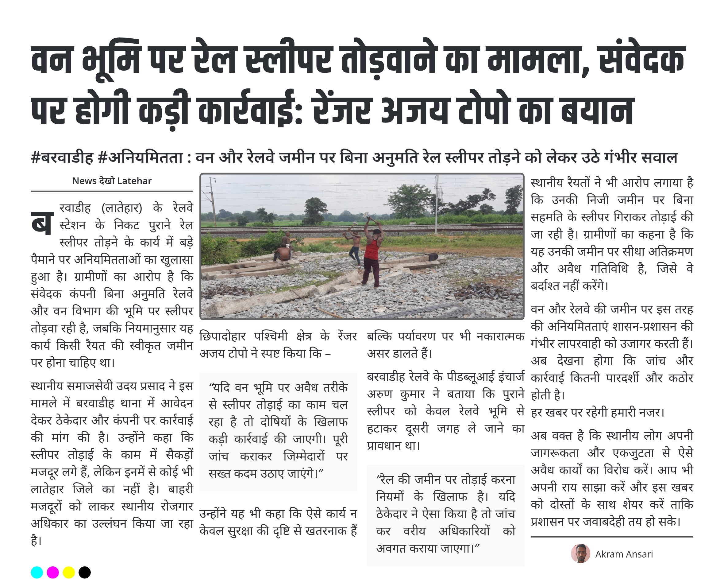 #बरवाडीह #अनियमितता : वन और रेलवे जमीन पर बिना अनुमति रेल स्लीपर तोड़ने को लेकर उठे गंभीर सवाल
