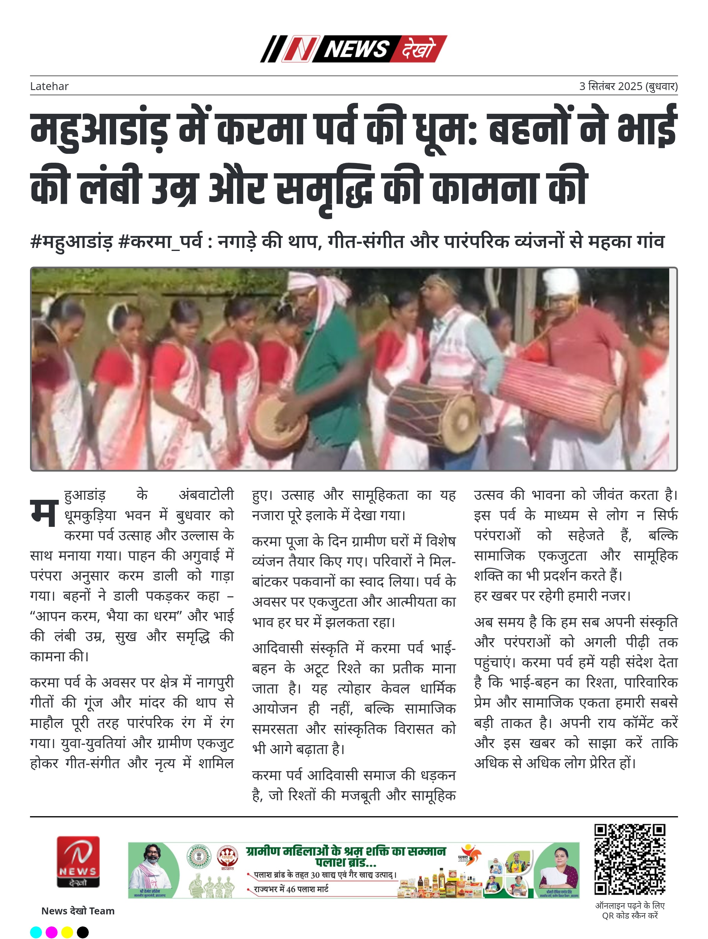 न्यूज़ देखो: करमा पर्व से झलकती है सामाजिक एकजुटता