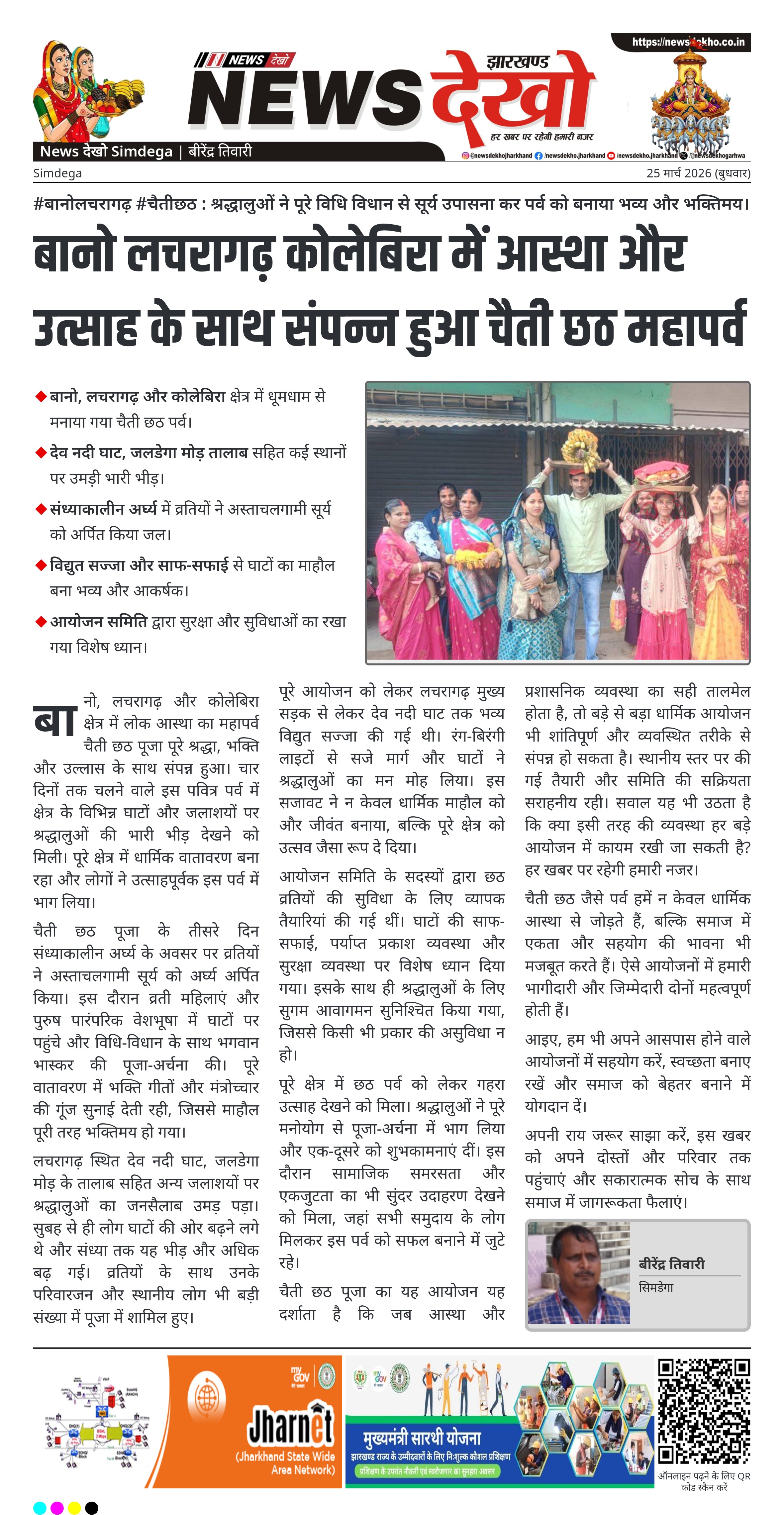 • बानो, लचरागढ़ और कोलेबिरा क्षेत्र में धूमधाम से मनाया गया चैती छठ पर्व।