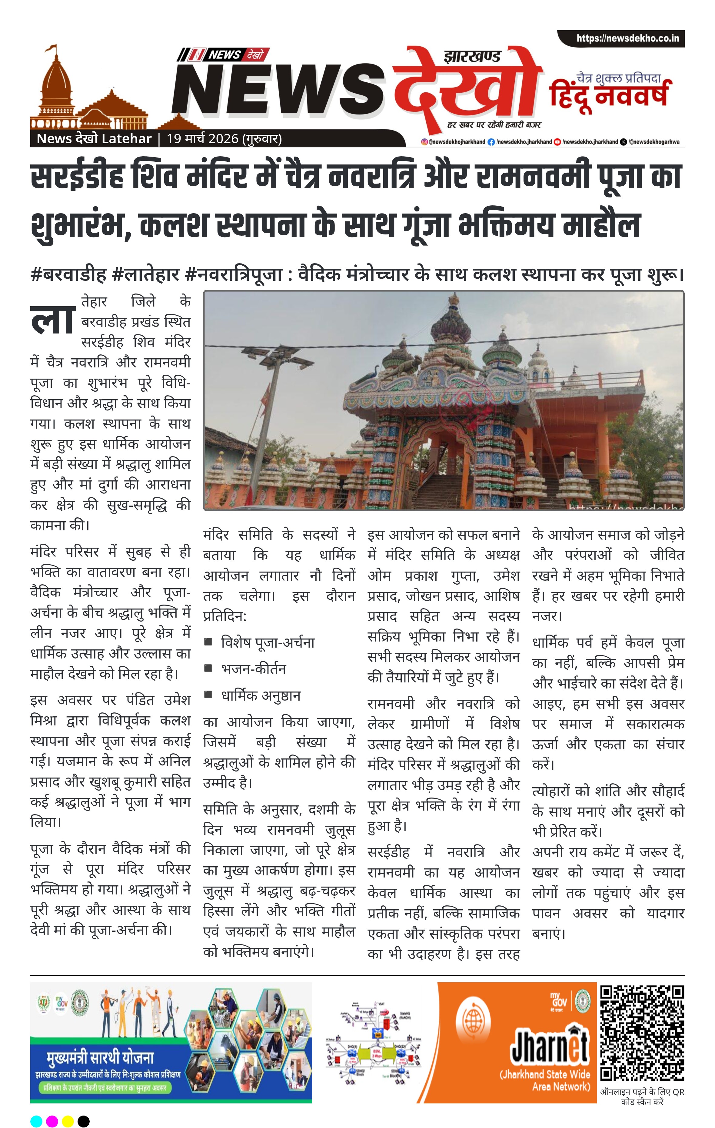 • सरईडीह शिव मंदिर, बरवाडीह में चैत्र नवरात्रि पूजा का शुभारंभ।